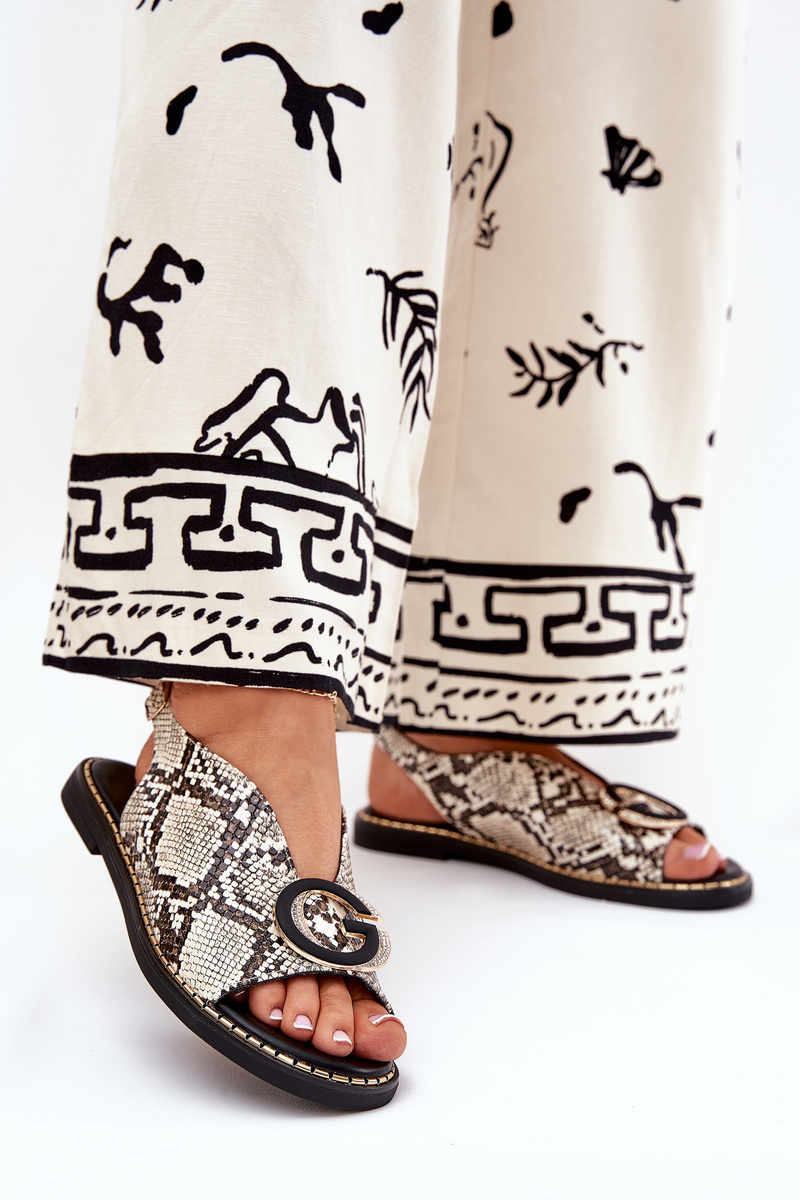 Ploché sandály s ozdobou hadí vzor béžovo-hnědé Haliones
