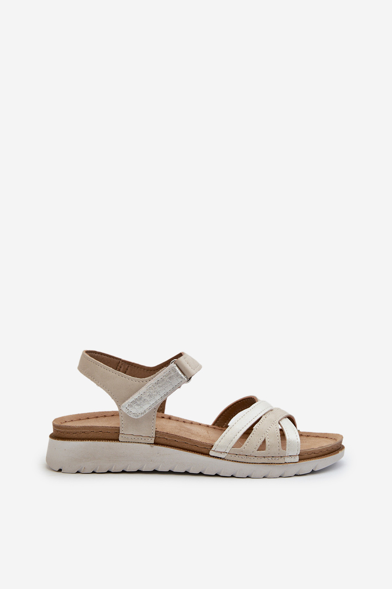 Pohodlné A Lehké Dámské Sandály Na Suchý Zip Inblu CN000041 Béžovo-Stříbrné