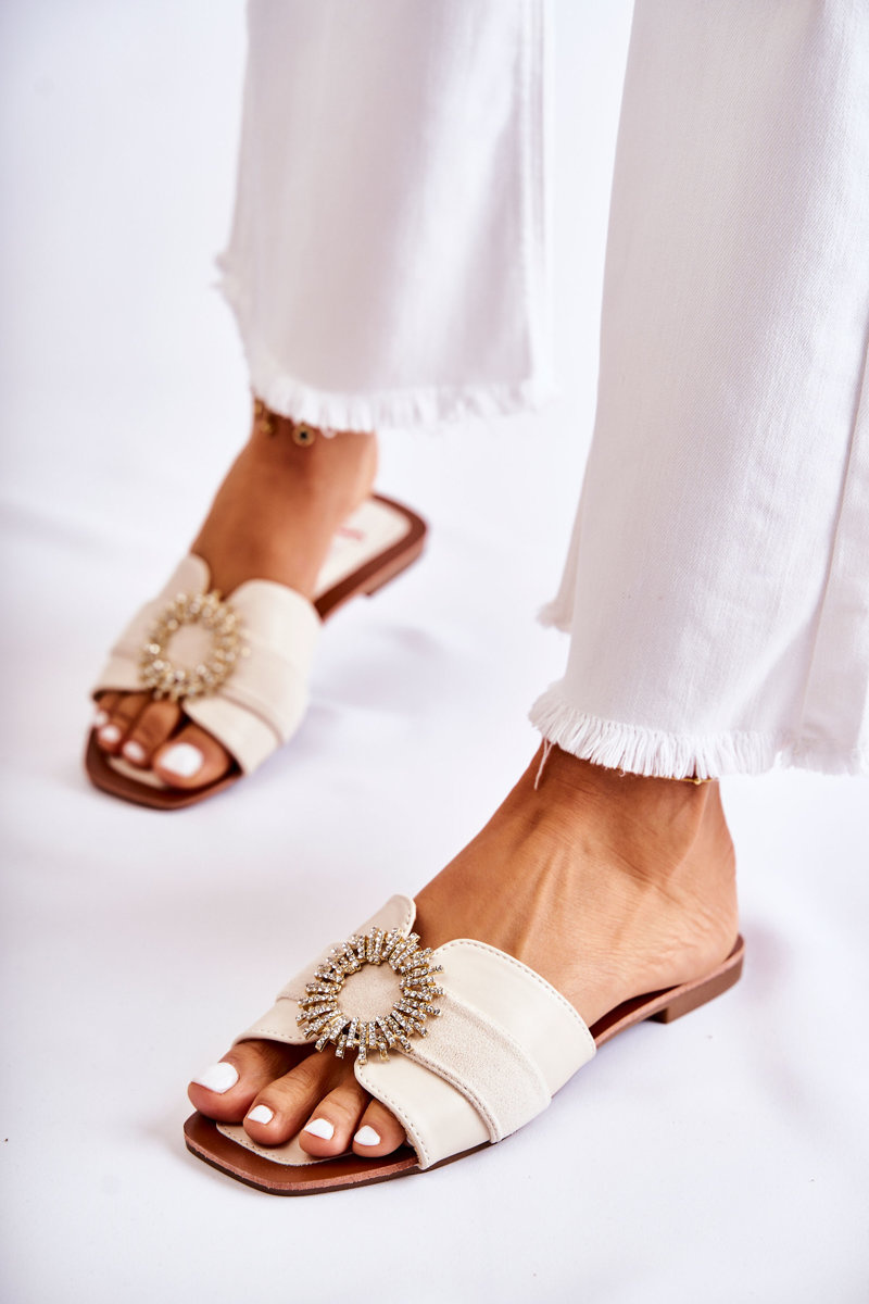 Pohodlné dámské pantofle s zdobením Světle béžová Ginera