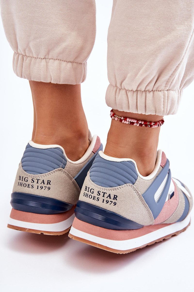 Pohodlné tenisky Big Star jsou vyrobeny z kombinace látky a eko semiše. Skvělý každodenní model. Vložka Memory Foam System si pamatuje tvar chodidla, poskytuje dokonalé přizpůsobení, tlumí nárazy, je odolná proti deformaci a umožňuje odpařování vlhkosti a regulaci teploty. Tyto boty byly umístěny na platformě. Navíc mají vyztuženou patu. Při výběru velikosti se řiďte tabulkou velikostí.