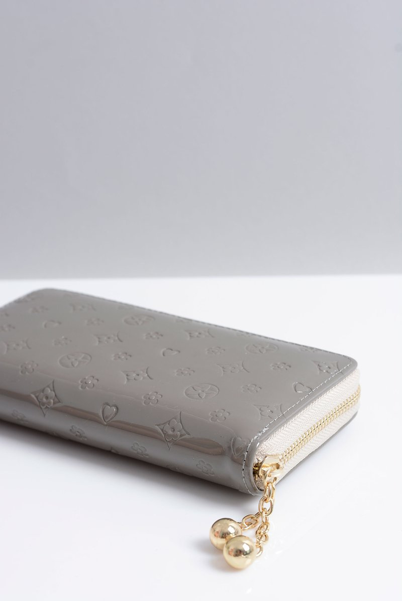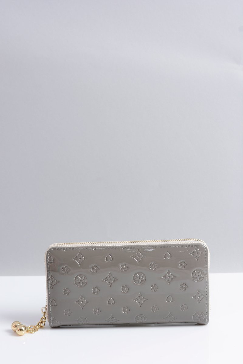 Portfel Damski Szare Duży Lakierowany Złoty Zamek