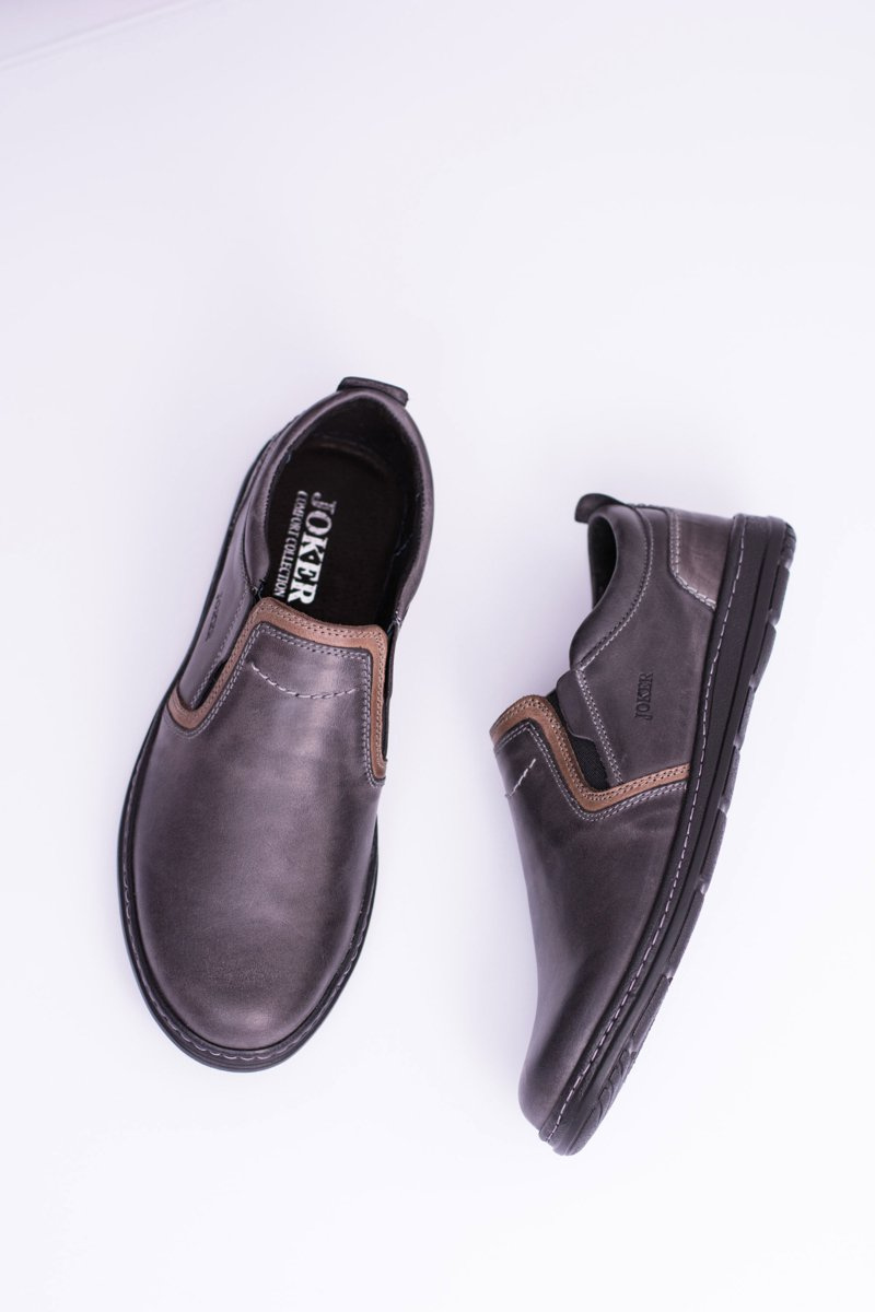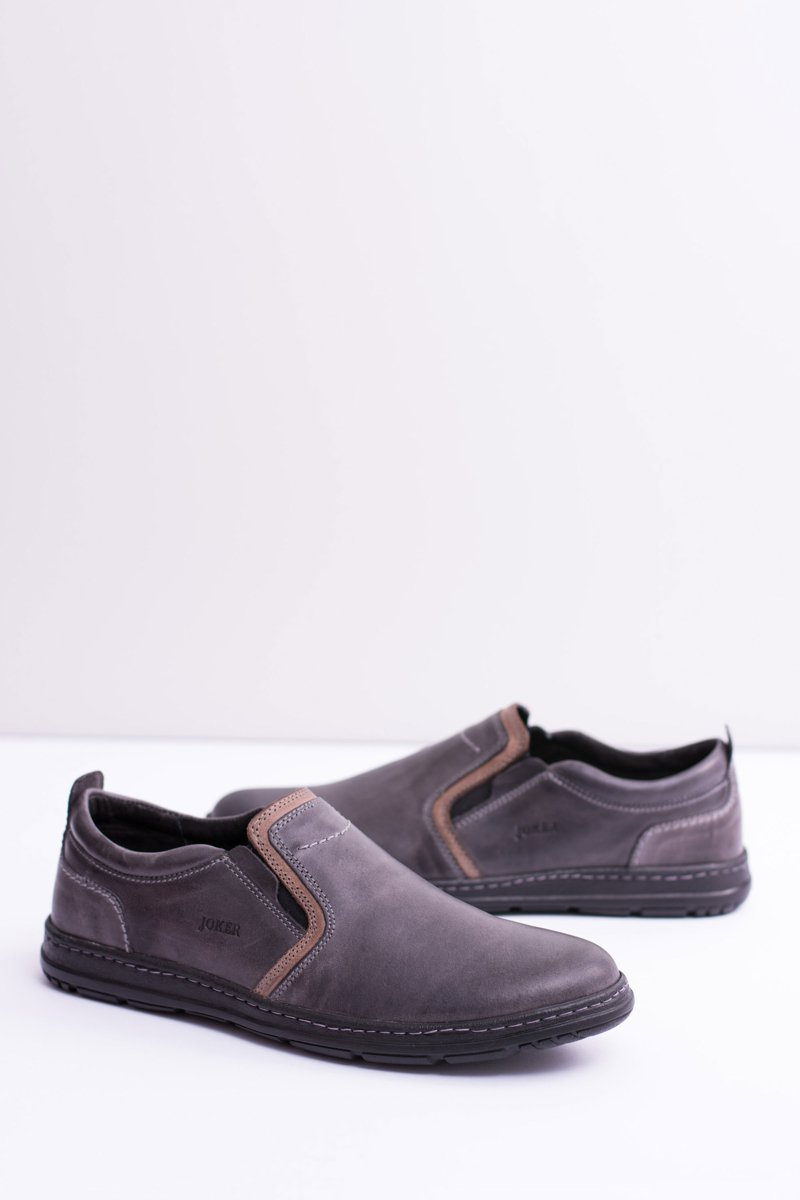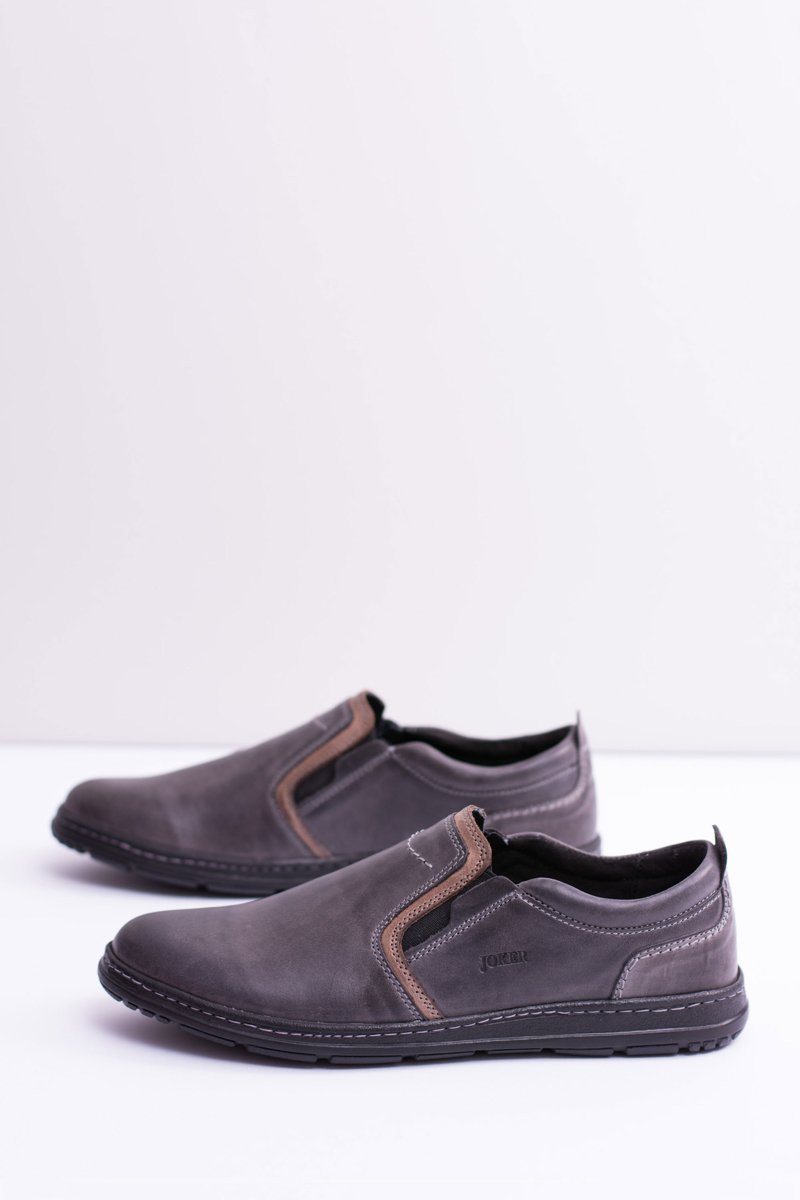přiléhavé Kožené pánské polobotky Leonidas šedé