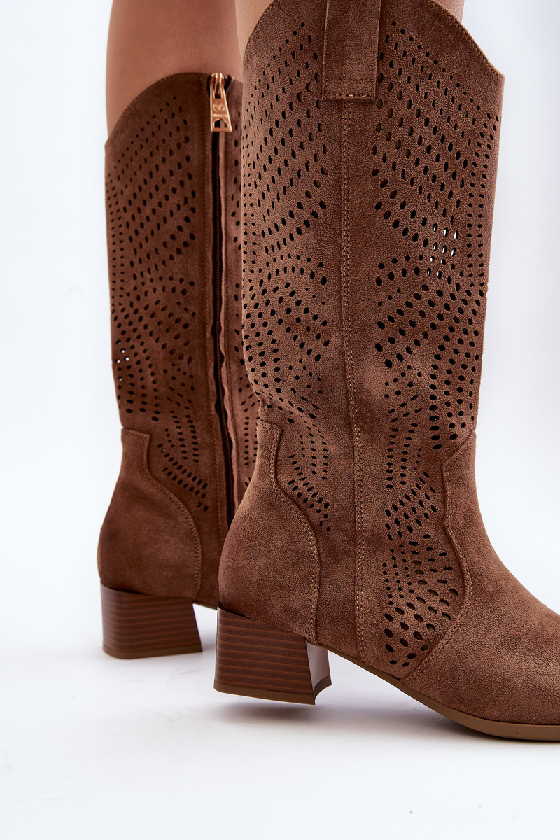 Prodyšné hnědé kozačky na nízkém podpatku Walea