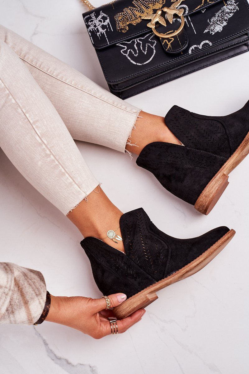 Jarní prolamované boty na skrytém klínovém podpatku. Boty jsou vyrobeny z ekologického semiše. Boty jsou velmi pohodlné díky měkké stélce z přírodní kůže. Nezapomeňte se podívat na celou naši kolekci dámských bot! Při výběru velikosti použijte tabulku velikostí.