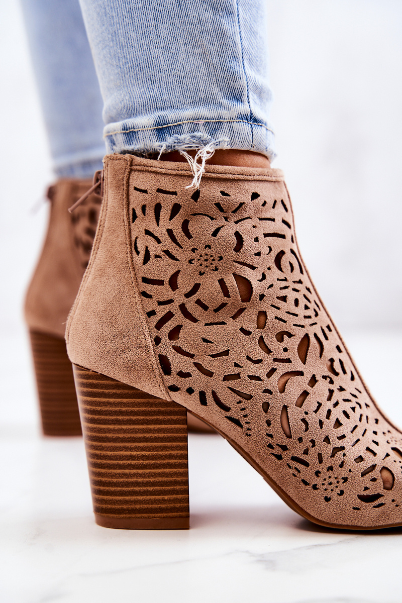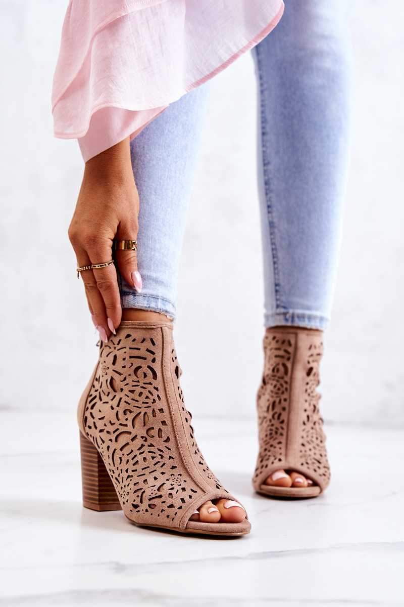Kozačky jsou neodmyslitelným prvkem dámských stylizací. Vyrobeno z semišové eko kůže. Klasické kozačky s otevřenými prsty se zapínají na zip v zadní části svršku. Díky podpatku v podobě sloupku bude vaše noha vypadat štíhle. Díky prolamovanému vzoru budou boty na noze vypadat skvěle! Nezapomeňte se také podívat na naši další kolekci bot! Při výběru velikosti použijte tabulku velikostí.