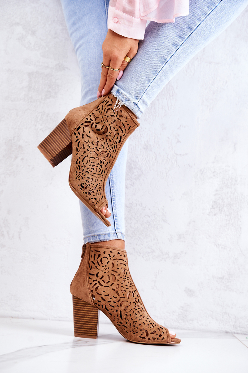 Kozačky jsou neodmyslitelným prvkem dámských stylizací. Vyrobeno z semišové eko kůže. Klasické kozačky s otevřenými prsty se zapínají na zip v zadní části svršku. Díky podpatku v podobě sloupku bude vaše noha vypadat štíhle. Díky prolamovanému vzoru budou boty na noze vypadat skvěle! Nezapomeňte se také podívat na naši další kolekci bot! Při výběru velikosti použijte tabulku velikostí.
