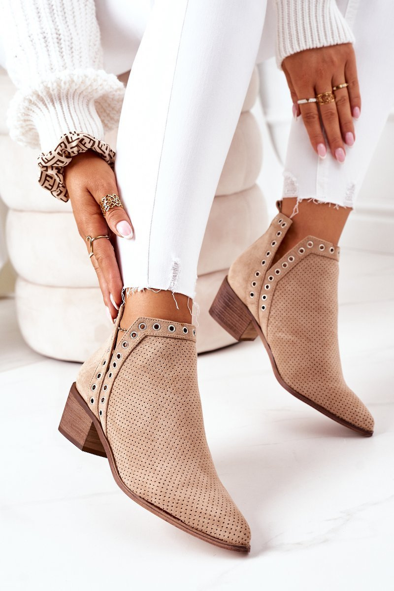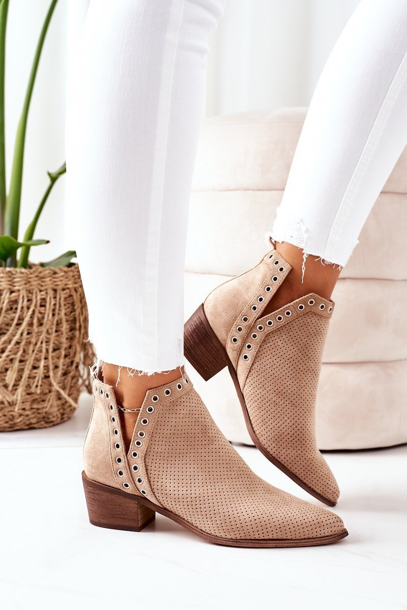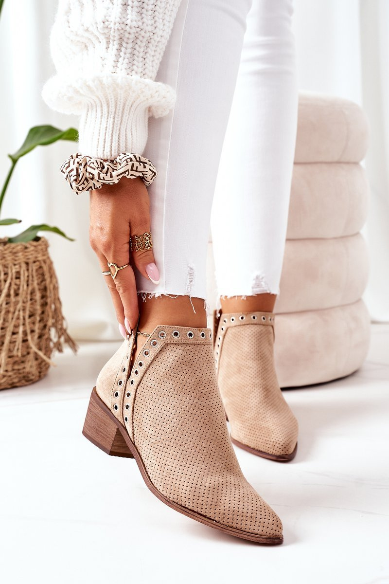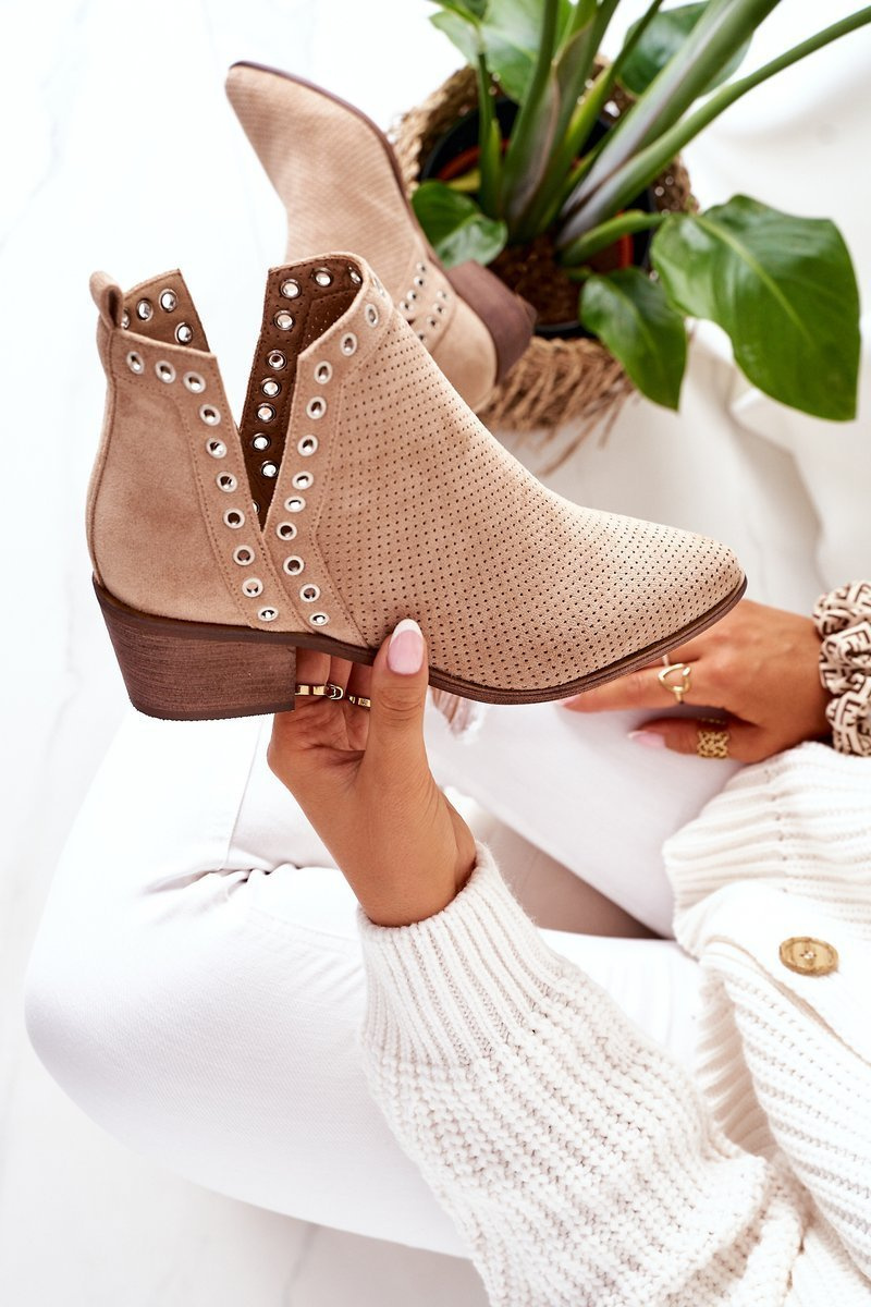 Prolamované Boty S Výřezy Béžové Western