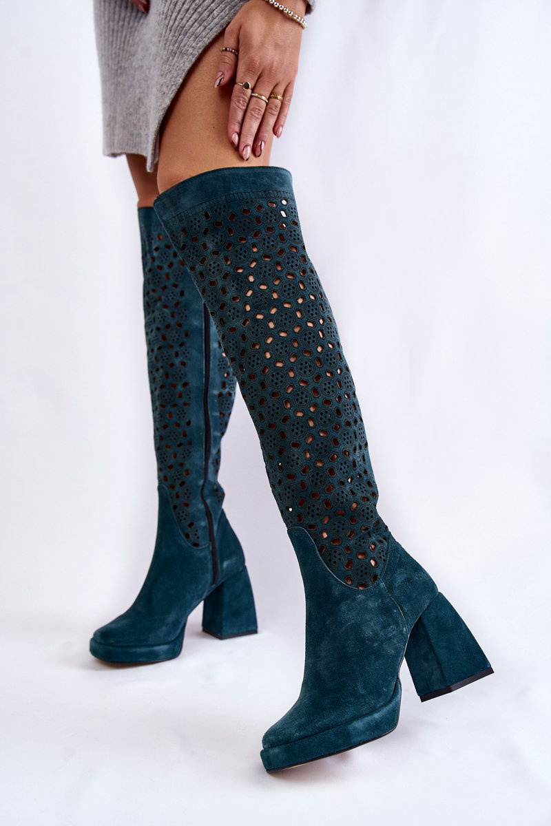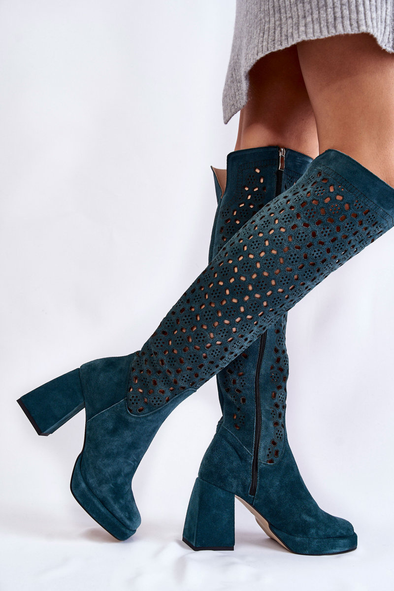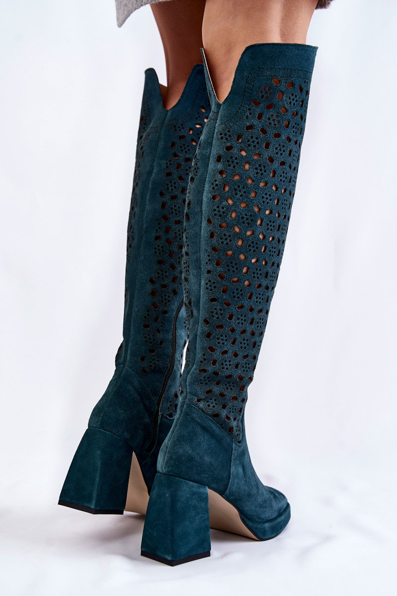 Jedinečné dámské kozačky od polského výrobce. Model je vyroben z vysoce kvalitní přírodní kůže. Mají módní prolamovaný vzor. Model s hranatou špičkou. Svršek s výřezem nahoře je celopropínací na zip. Stélka je vyrobena z přírodní kůže. Tento model byl osazen na masivním podpatku ve formě kvádru. Při výběru velikosti použijte tabulku velikostí.