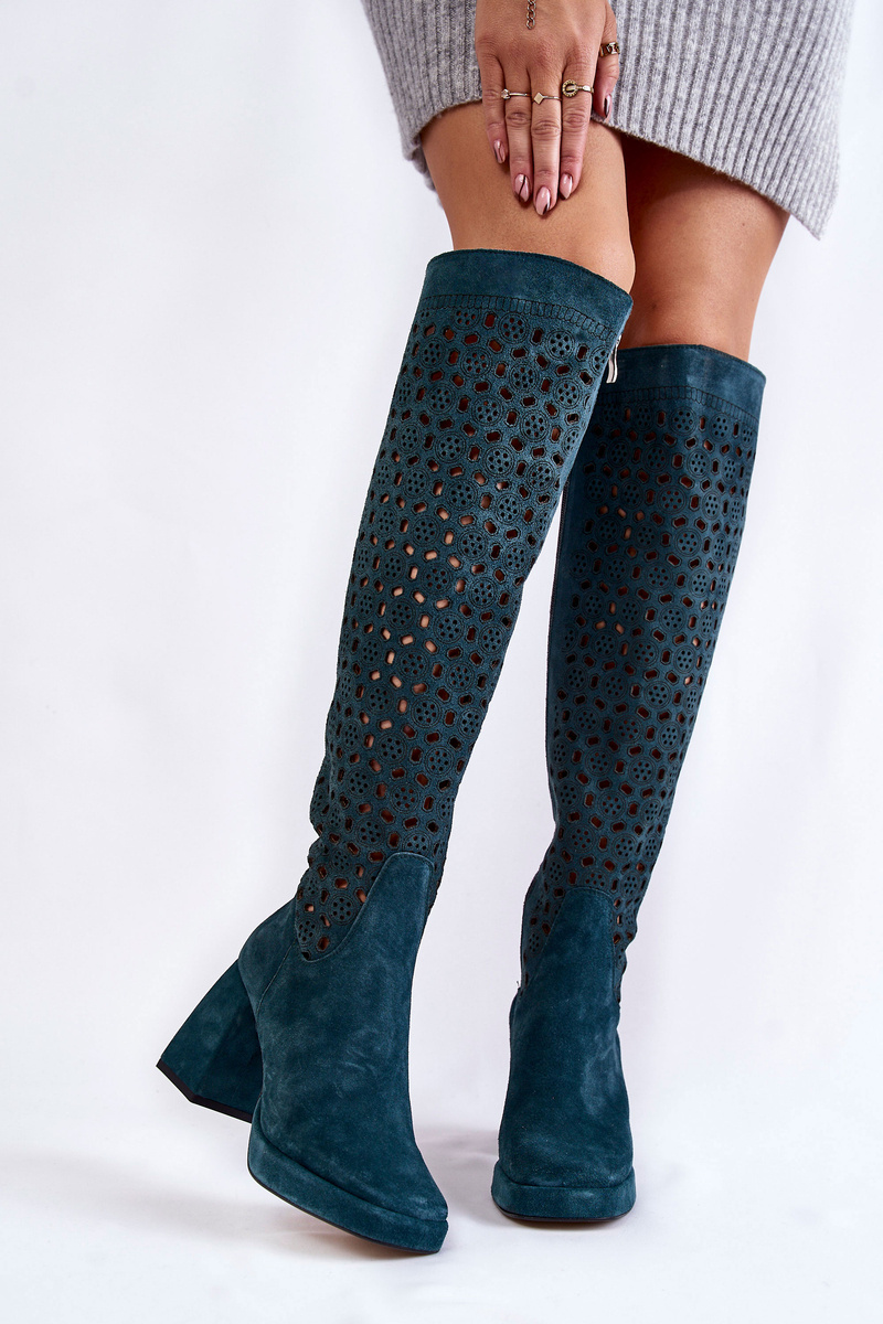 Prolamované Semišové Boty Na Podpatku Zelené Castres