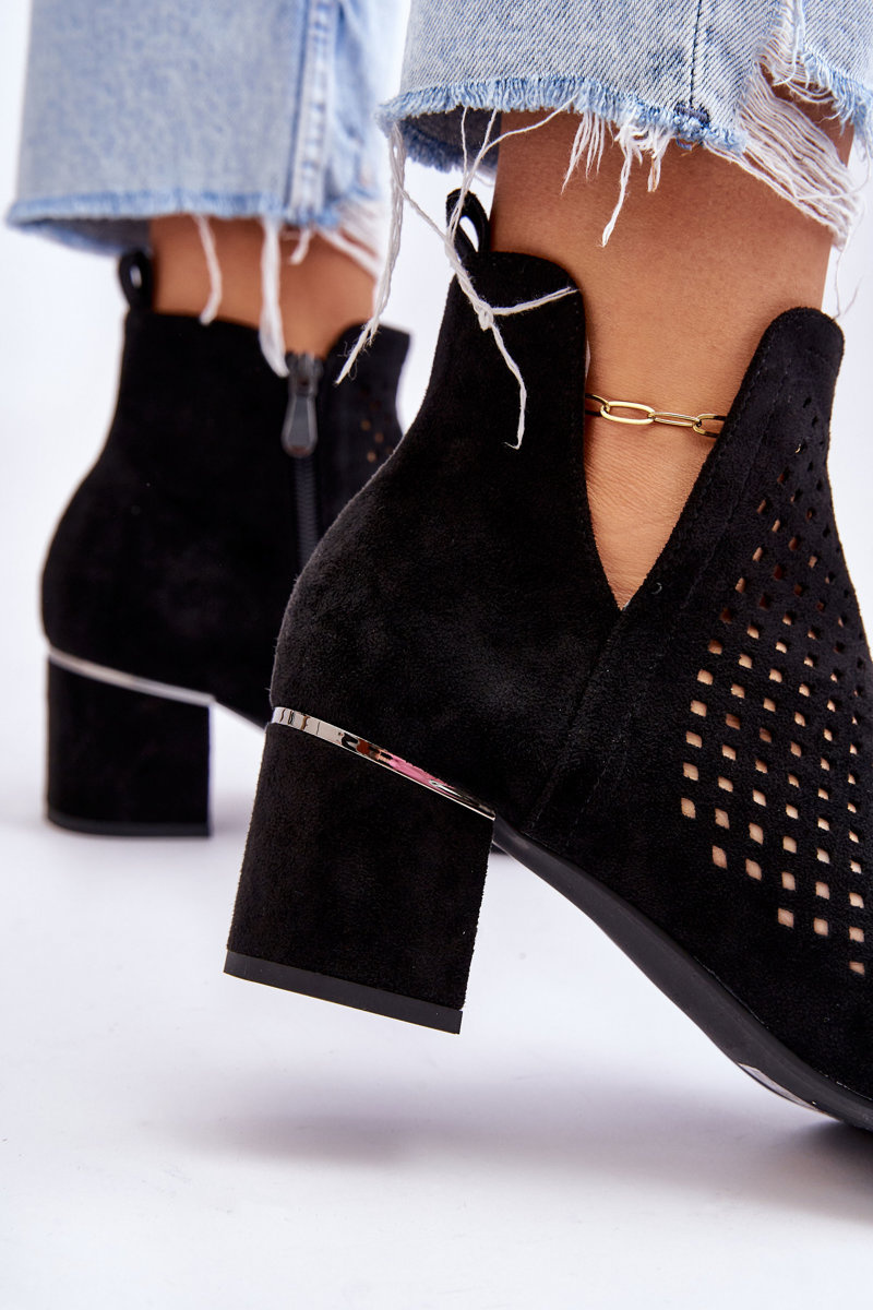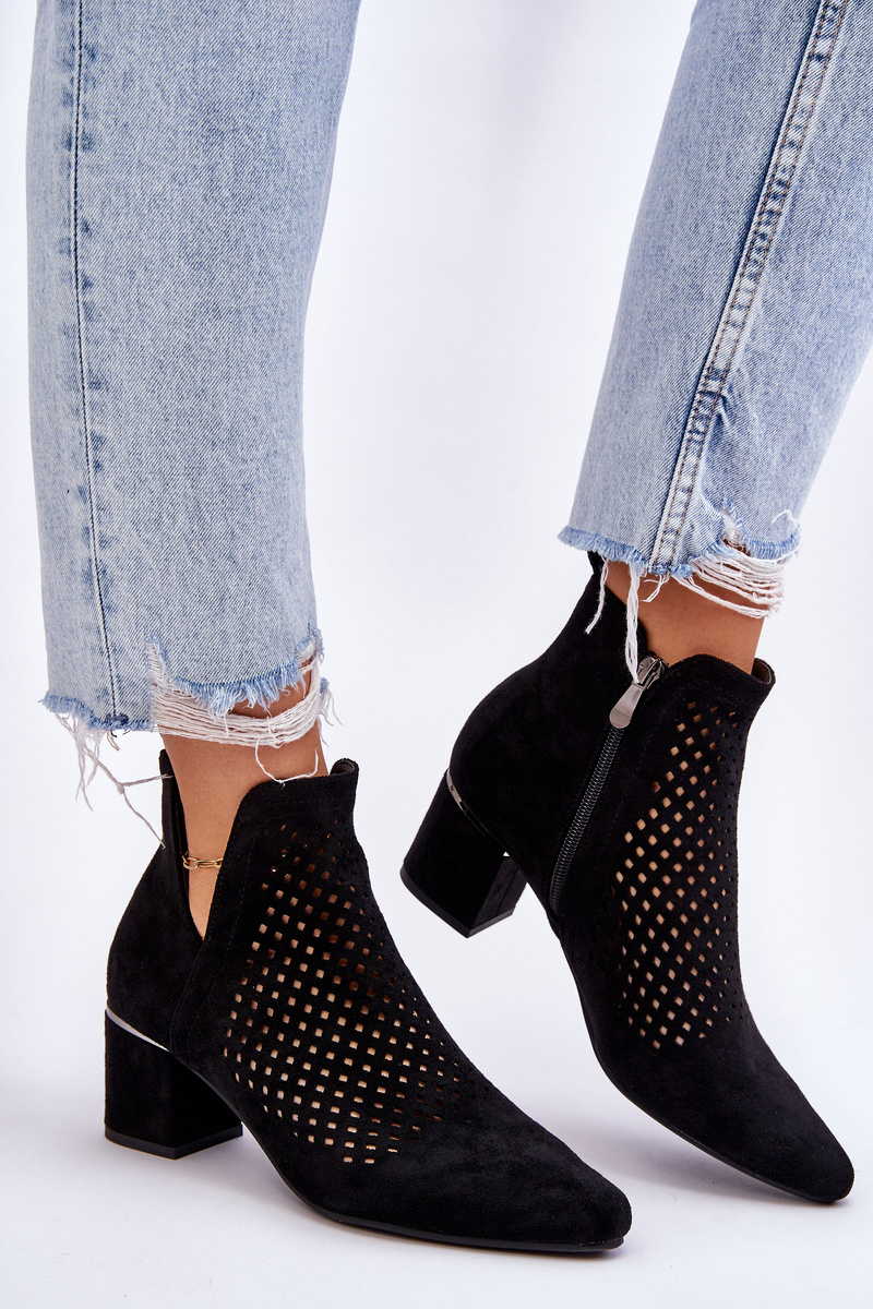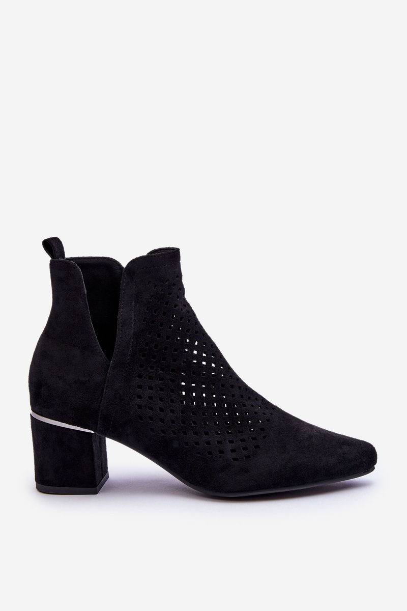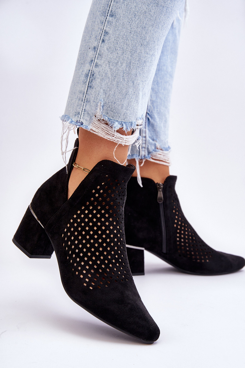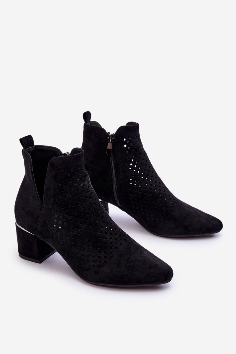 S těmito botami budete dokonale připraveni na nadcházející sezónu! Tento model charakterizuje svršek z ekologického semiše v prolamovaném vzoru. Podrážka bot je vyrobena z plastu. Praktický jezdec na boku svršku usnadní obouvání a vyzouvání. Vyztužený podpatek a stélka z ekokůže vám zajistí pohodlí a stabilitu. Kozačky jsou boty, které se hodí prakticky ke každému outfitu. Při výběru velikosti se řiďte tabulkou velikostí.