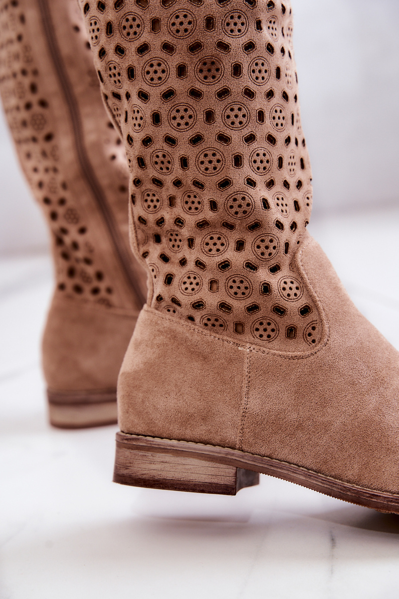 Prolamované Semišové Ploché Kozačky Béžová Darnell