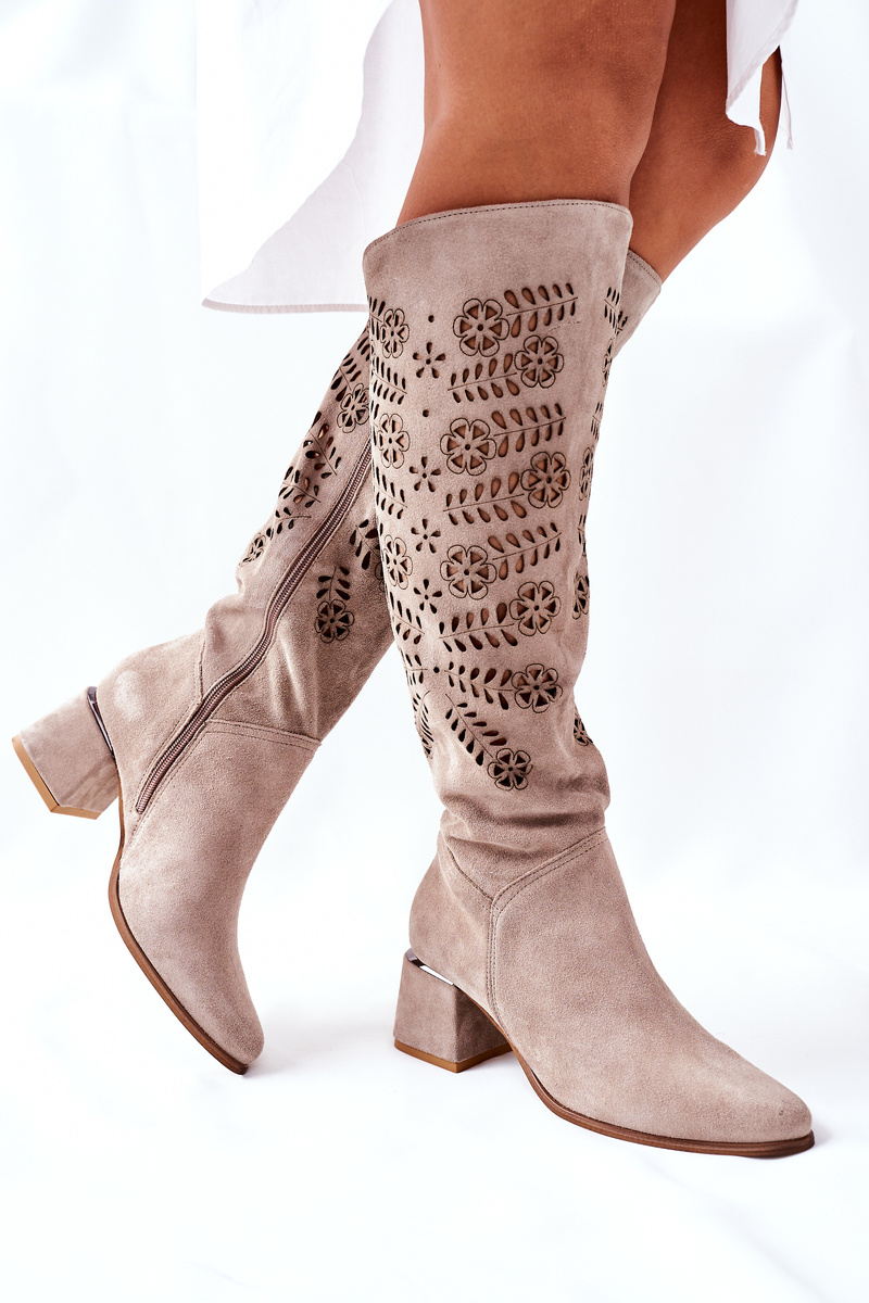Prolamované Semišové Ploché Kozačky Béžové Romena