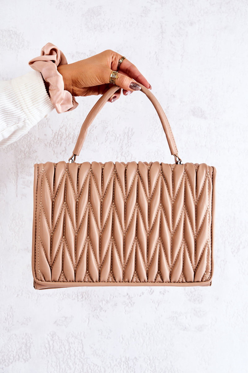 Taška z prošívané ekokůže. Má barevnou rukojeť. Vnější kapsa na zip. Klopa tašky se uzavírá pomocí magnetu. Taška je vybavena látkovým nastavitelným popruhem. Přihrádka se zapíná na zip a uvnitř jsou dvě kapsy - jedna otevřená a druhá na zip. Nezapomeňte si prohlédnout celou naši kolekci kabelek!