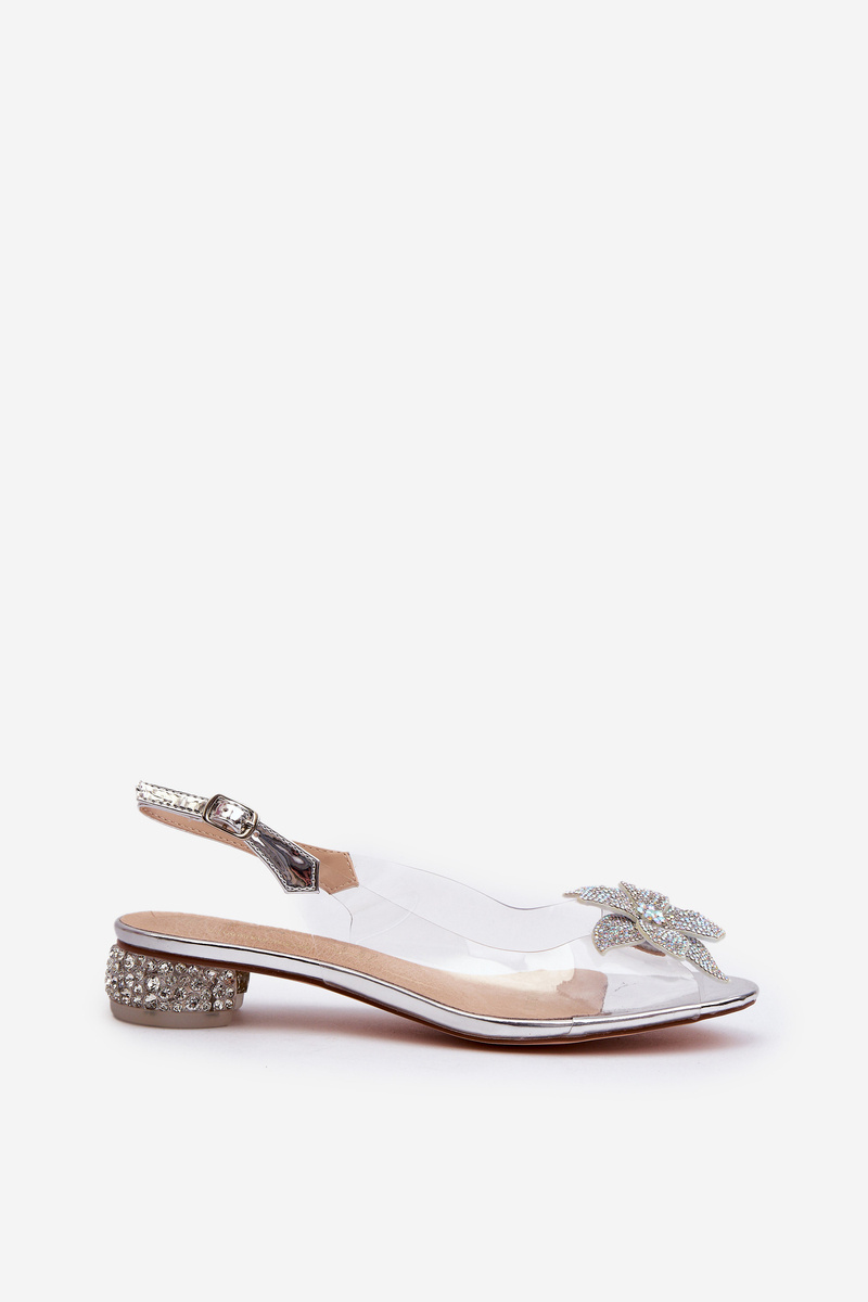 Průhledné sandály na nízkém podpatku s ozdobou Stříbrné D&A MR38-383