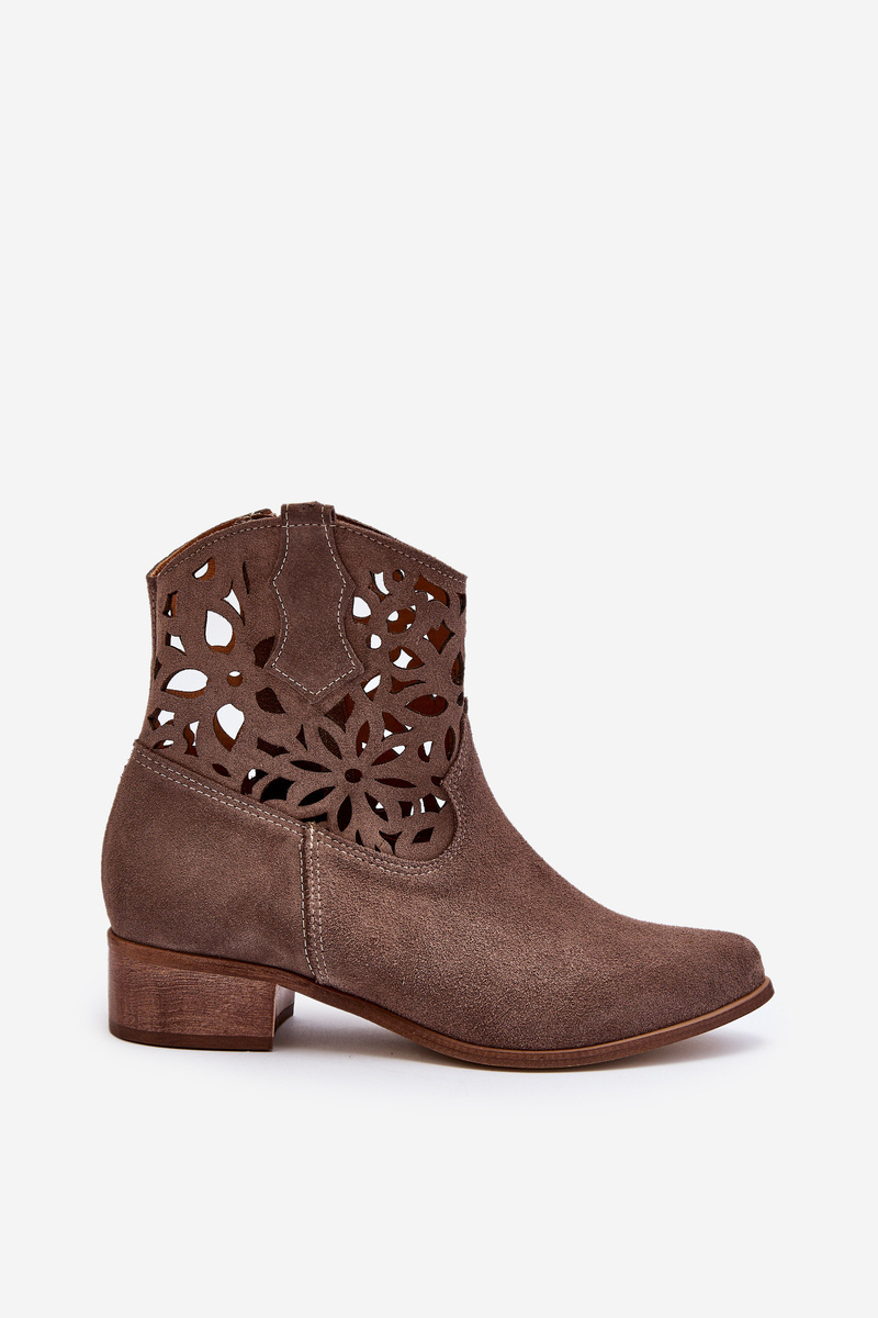 Průsvitné kotníčkové kovbojky se zvýšenou podpatkem z semiše Zazoo 3404 Beige
