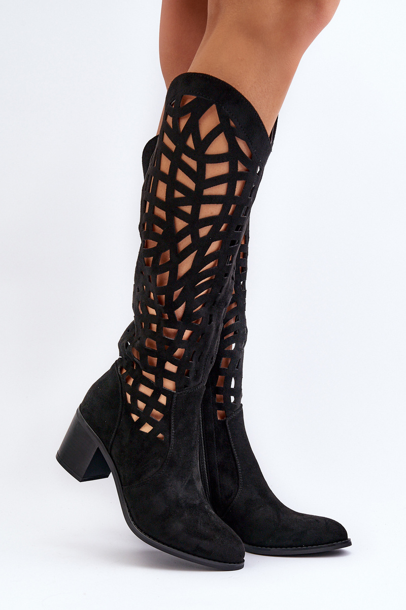 Průsvitné kozačky na podpatku černé Pinkema