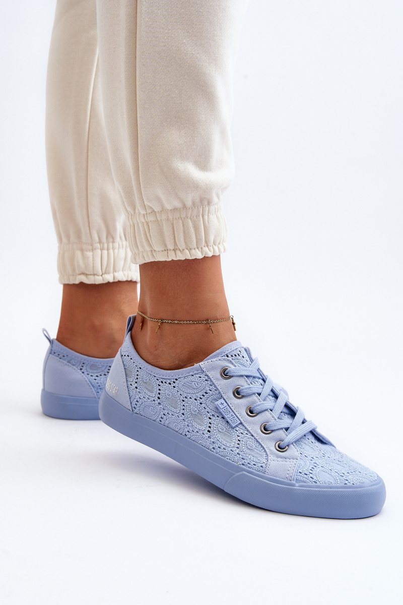Nádherné dámské tenisky značky BIG STAR. Tenisky jsou vyrobeny z textilního materiálu v prodyšném vzoru. Mají protiskluzovou podrážku. Měkká stélka zajistí pohodlí během nošení. Mají klasické šněrování. Na boku je logo značky Big Star. Tento model skvěle zapadne do jarně-létní sezóny, takže si je rozhodně musíte pořídit! Model je také k dispozici ve verzi pro děti! Při výběru velikosti se řiďte tabulkou velikostí.