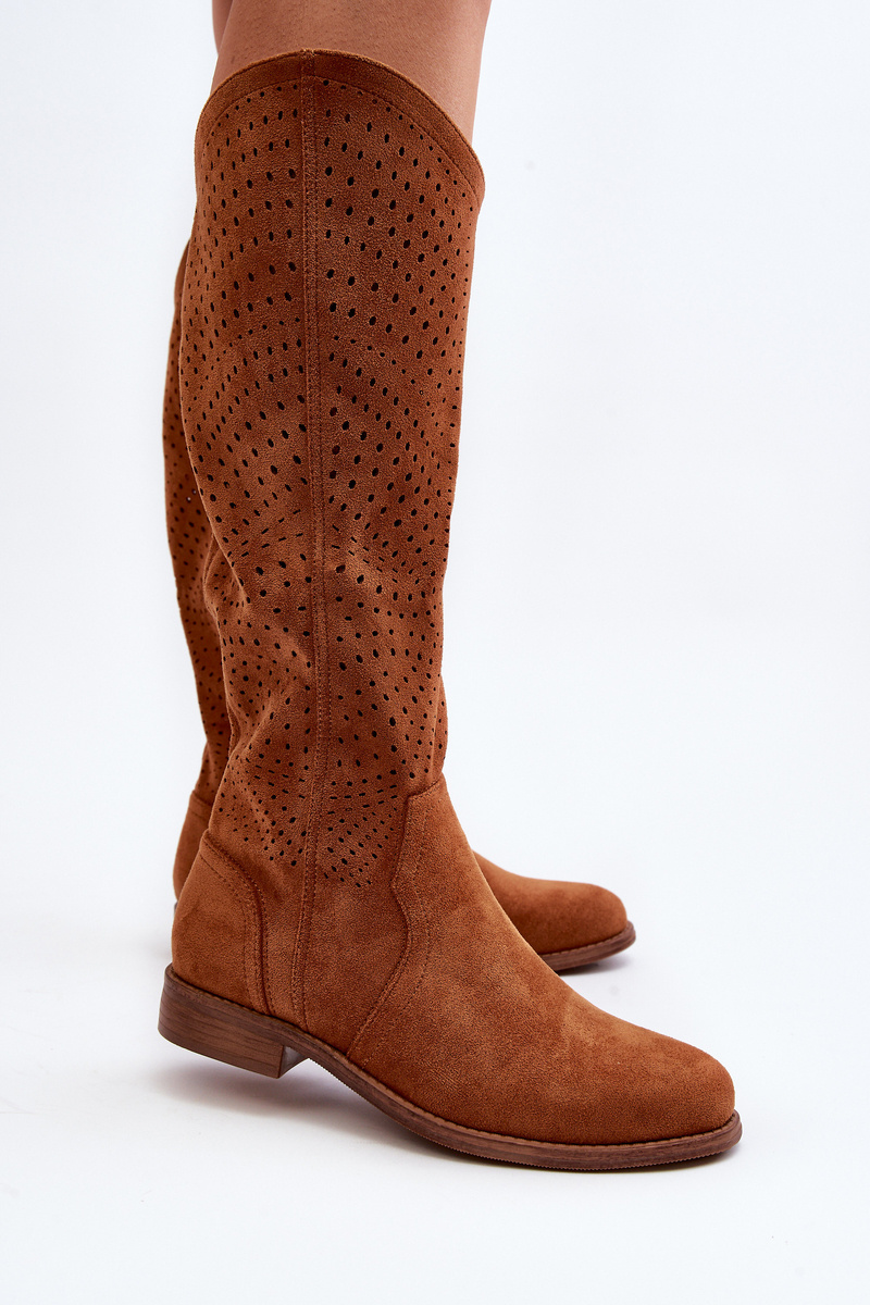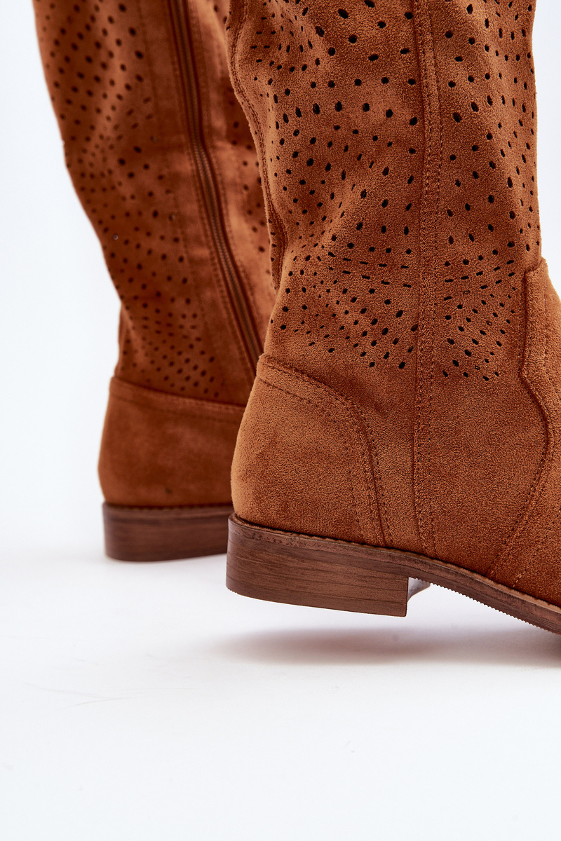Dámské kozačky v kovbojském stylu. Vyrobené z ekologického semiše. Pevný, plochý podpatek. Zapínání na zip po straně. Model s prodyšným střihem sahajícím před koleno. Zakulacené špičky. Ideální k mnoha každodenním outfitům! Určitě byste je měla mít ve své skříni! Při výběru velikosti se řiďte tabulkou velikostí.