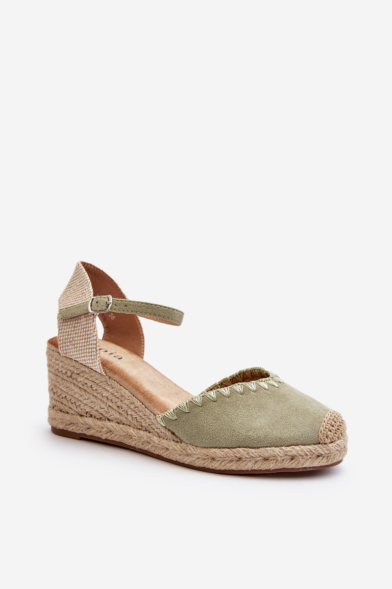 Sametové sandály espadrily na klinu s prýmkem zelené Raylin