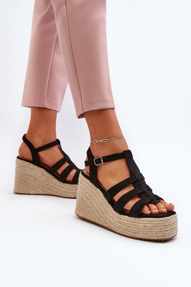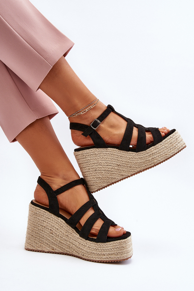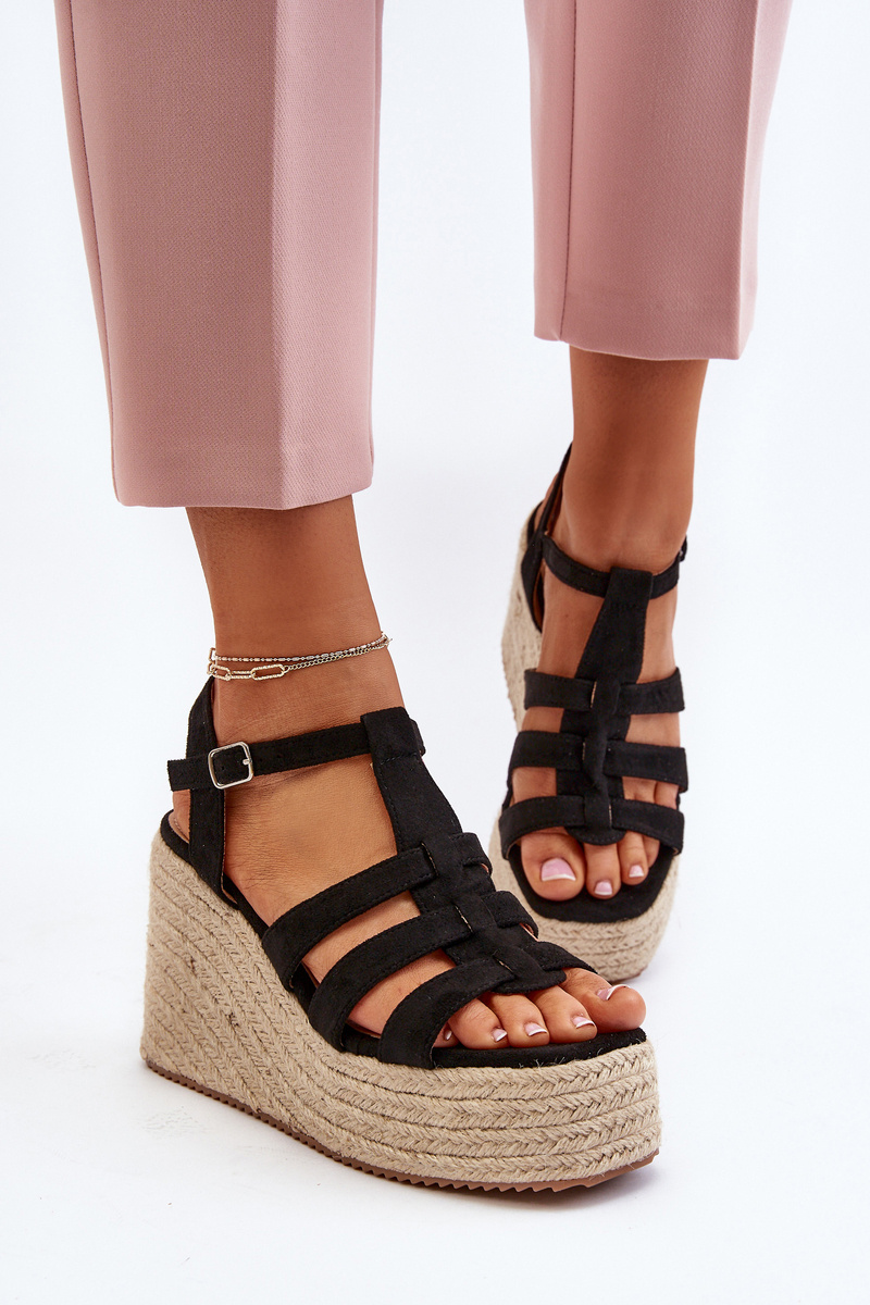 Sandály na klíně jsou skvělým řešením pro ty, kteří hledají obuv, která spojuje pohodlí a eleganci, zejména během dlouhých letních procházek. Klín a platforma s jutovou pletenkou poskytují dodatečnou podporu pro nohy, což činí chůzi méně únavnou. Vyrobeno z ekologického semiše. Zapíná se na nastavitelný popruh s přezkou. Určitě si je musíte pořídit! Při výběru velikosti se řiďte tabulkou velikostí.