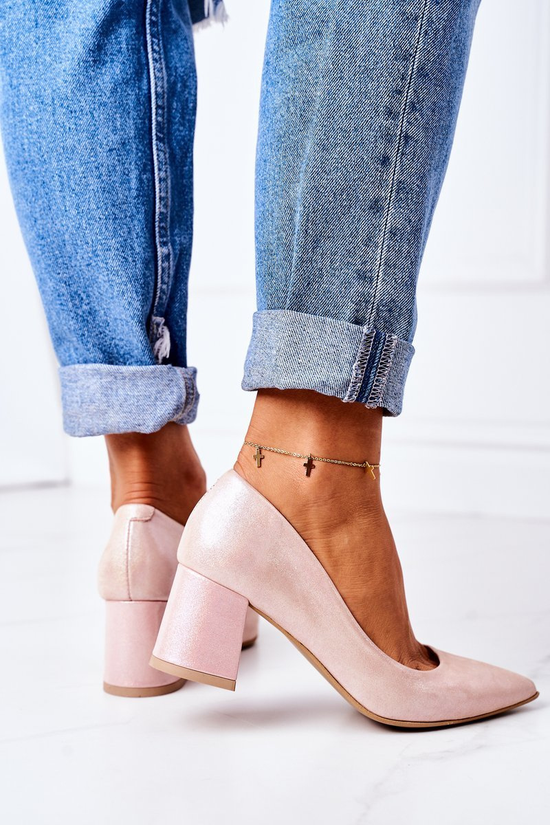 Saténové Lodičky Na Podpatku Lewski Shoes 2801 Růžové