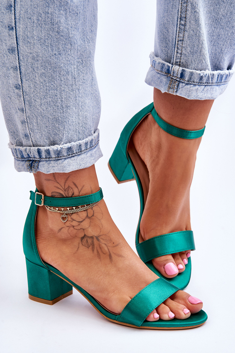 Saténové sandály na nízkém podpatku Zelená Juliet