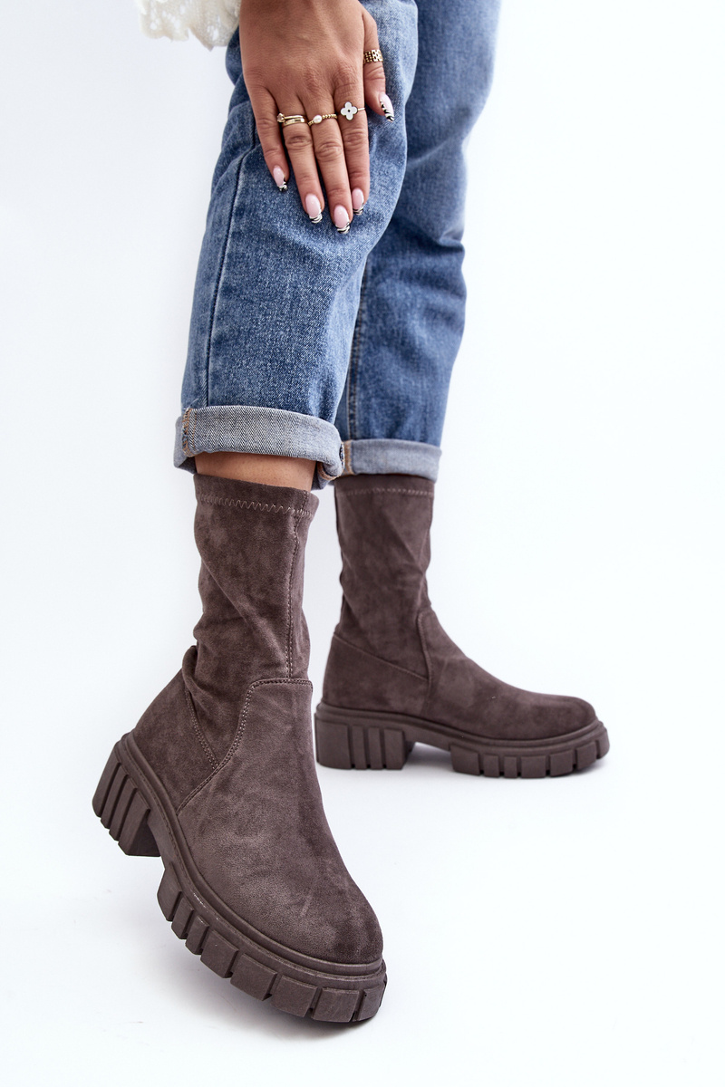 Dámské kozačky vyrobené z ekokoženky. Umístěné na masivním, plochém podpatku a podrážce. Nevyhřívané. Měkká vložka zaručí pohodlí při nošení. Peta na těchto botách je zesílena. Tento model lze sladit s mnoha podzimními stylizacemi! Při výběru velikosti se řiďte tabulkou velikostí.