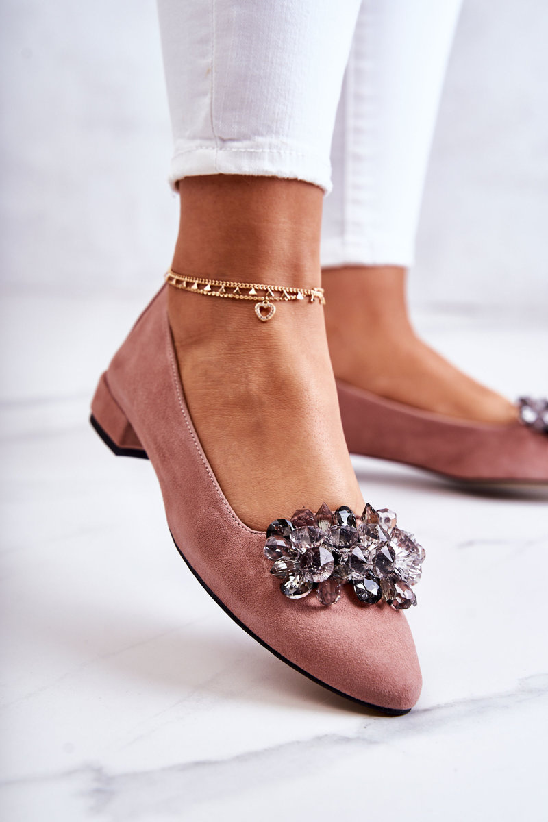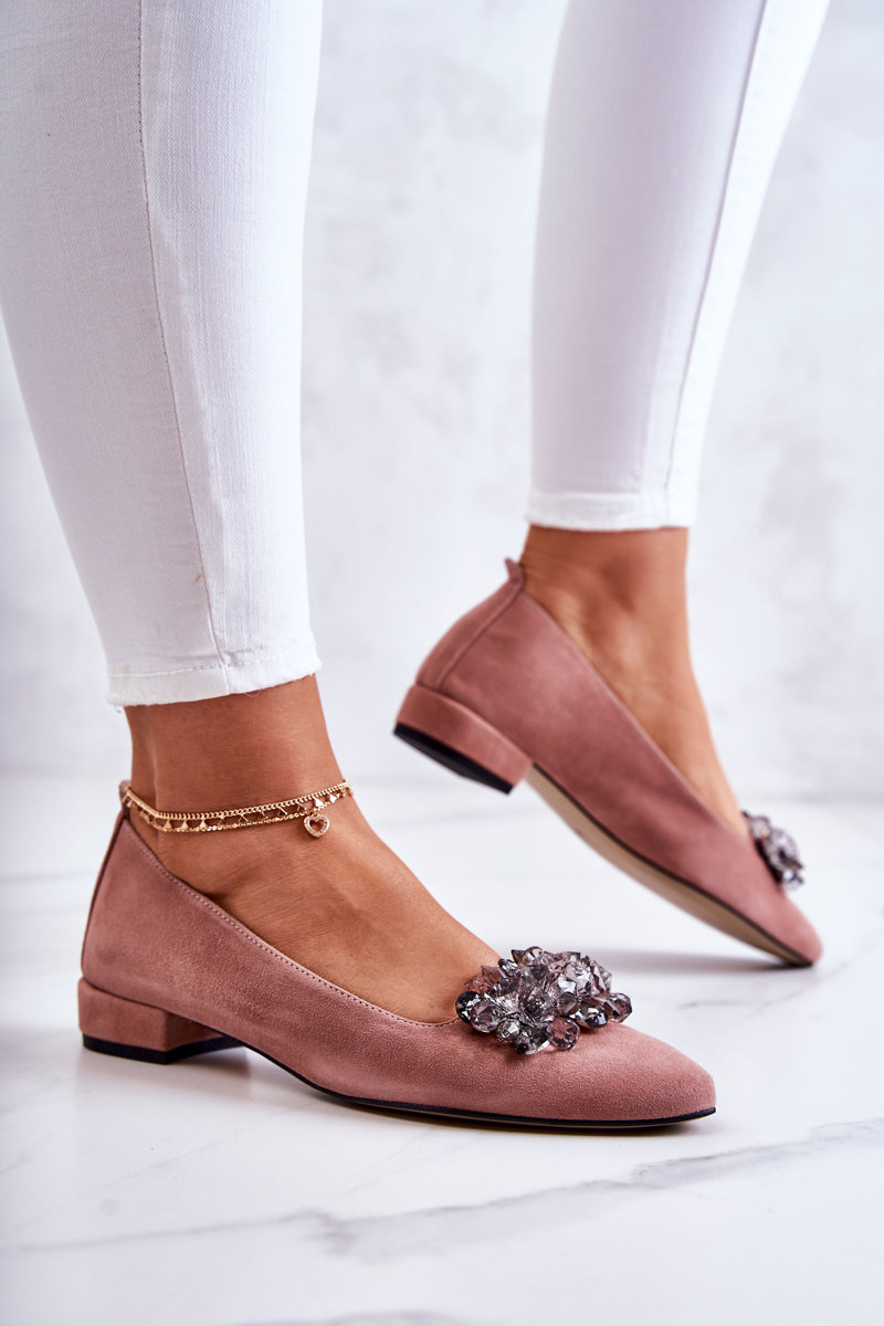 Semišové balerínky s zdobením růžove Loretty