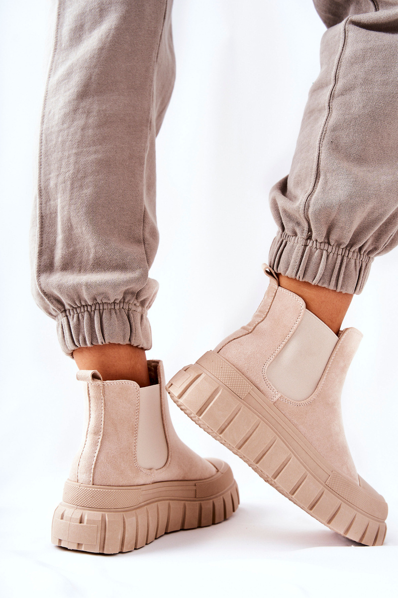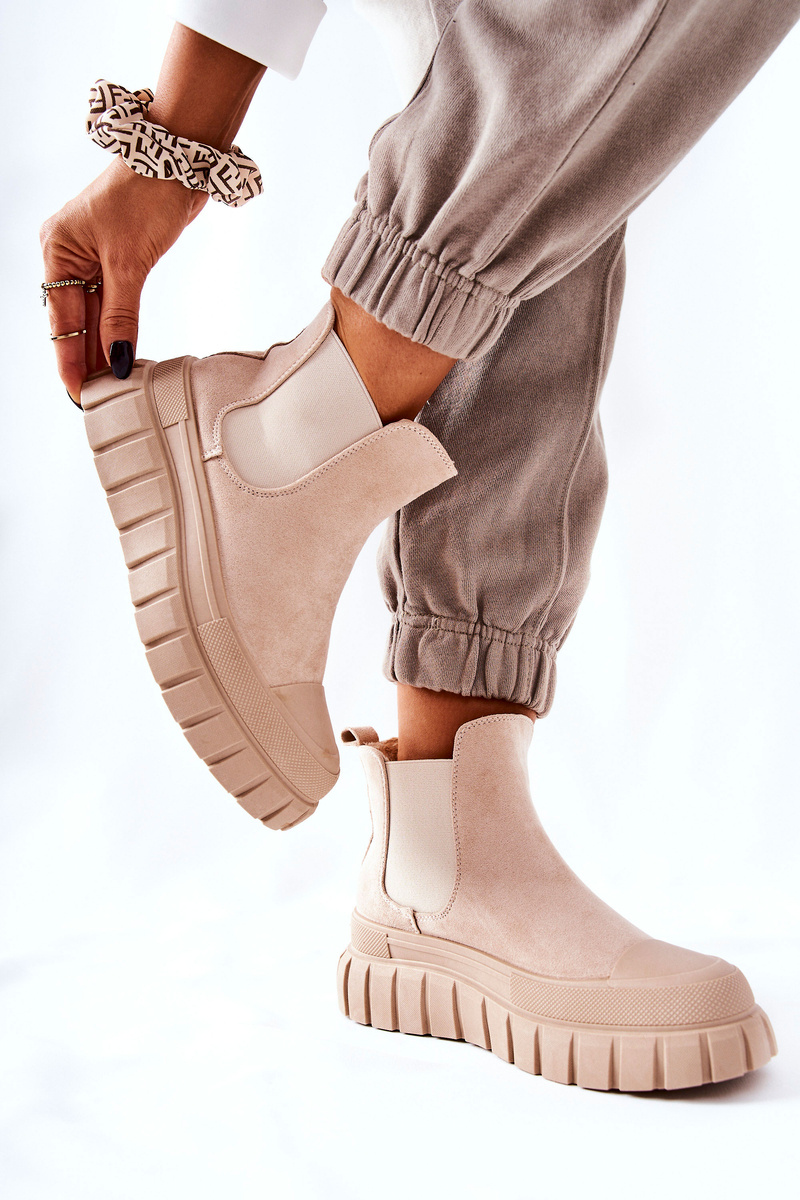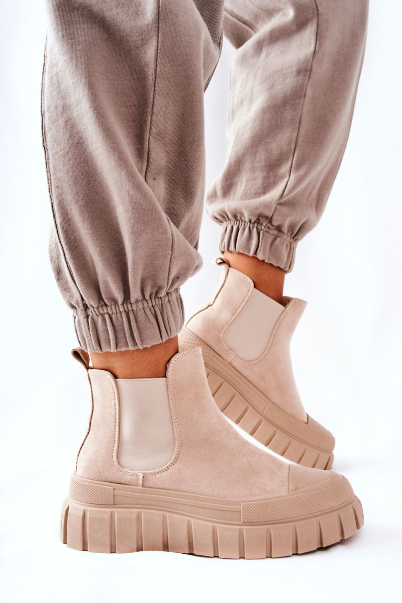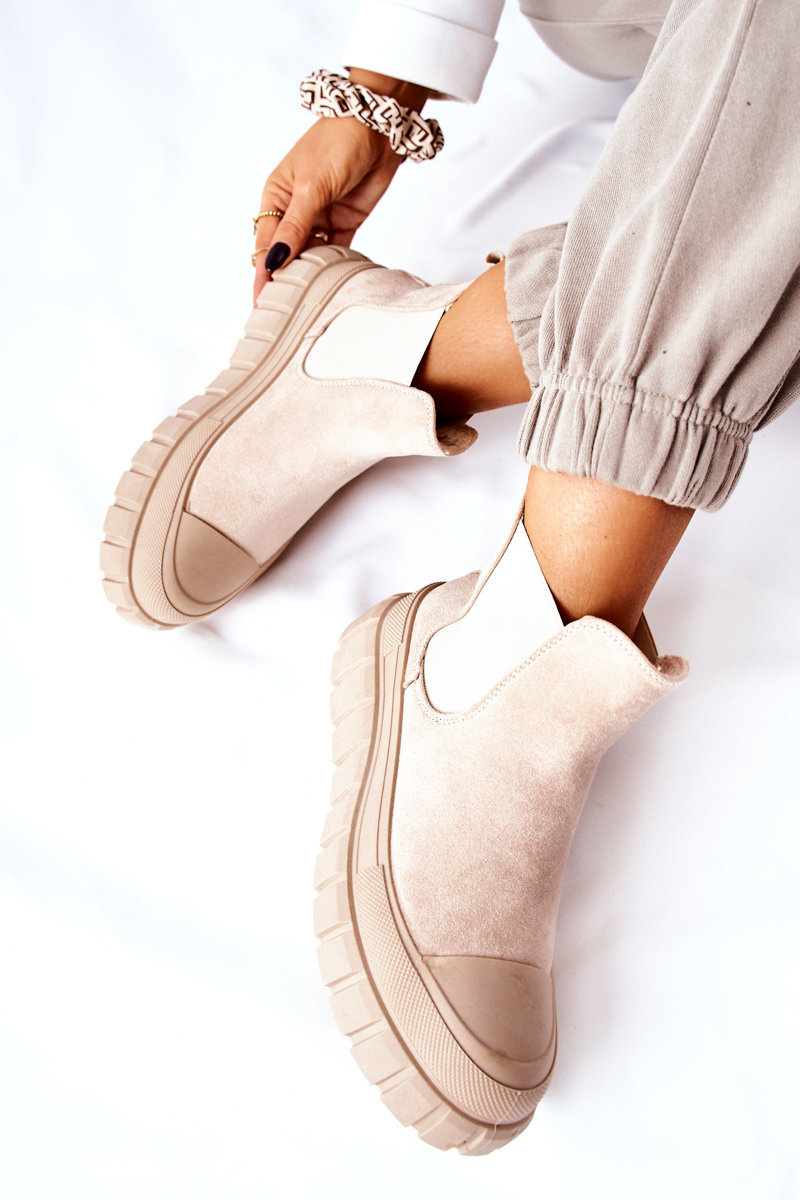 Boty byly vyrobeny z ekologického semiše. Gumičky na svršku zajišťují pohodlné nošení. Díky vysoké platformě se boty pohodlně nosí. Vnitřní strana je zateplená měkkou kožešinou příjemnou na dotek. Boty jsou na přední straně vyztužené gumou. Při výběru velikosti se řiďte tabulkou velikostí.