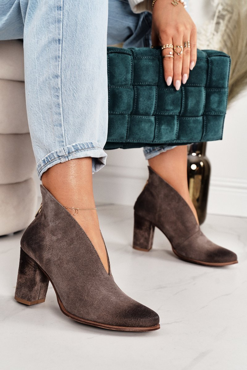 Semišové Boty Na Sloupku S řezem Exquisite 1231 Cappuccino