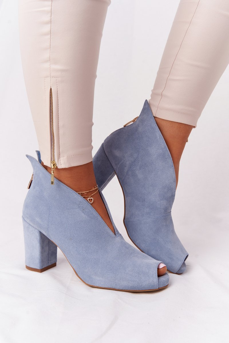 Semišové Boty Na Sloupku S řezem Exquisite 1243 Modré