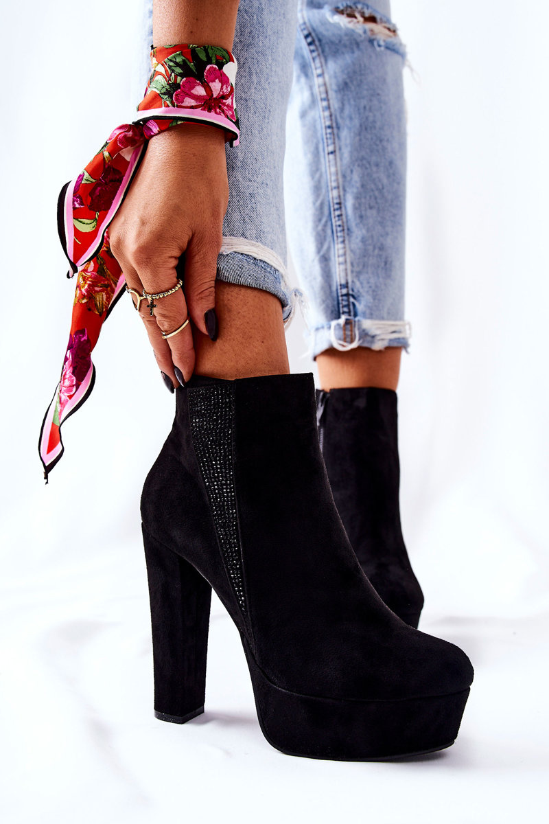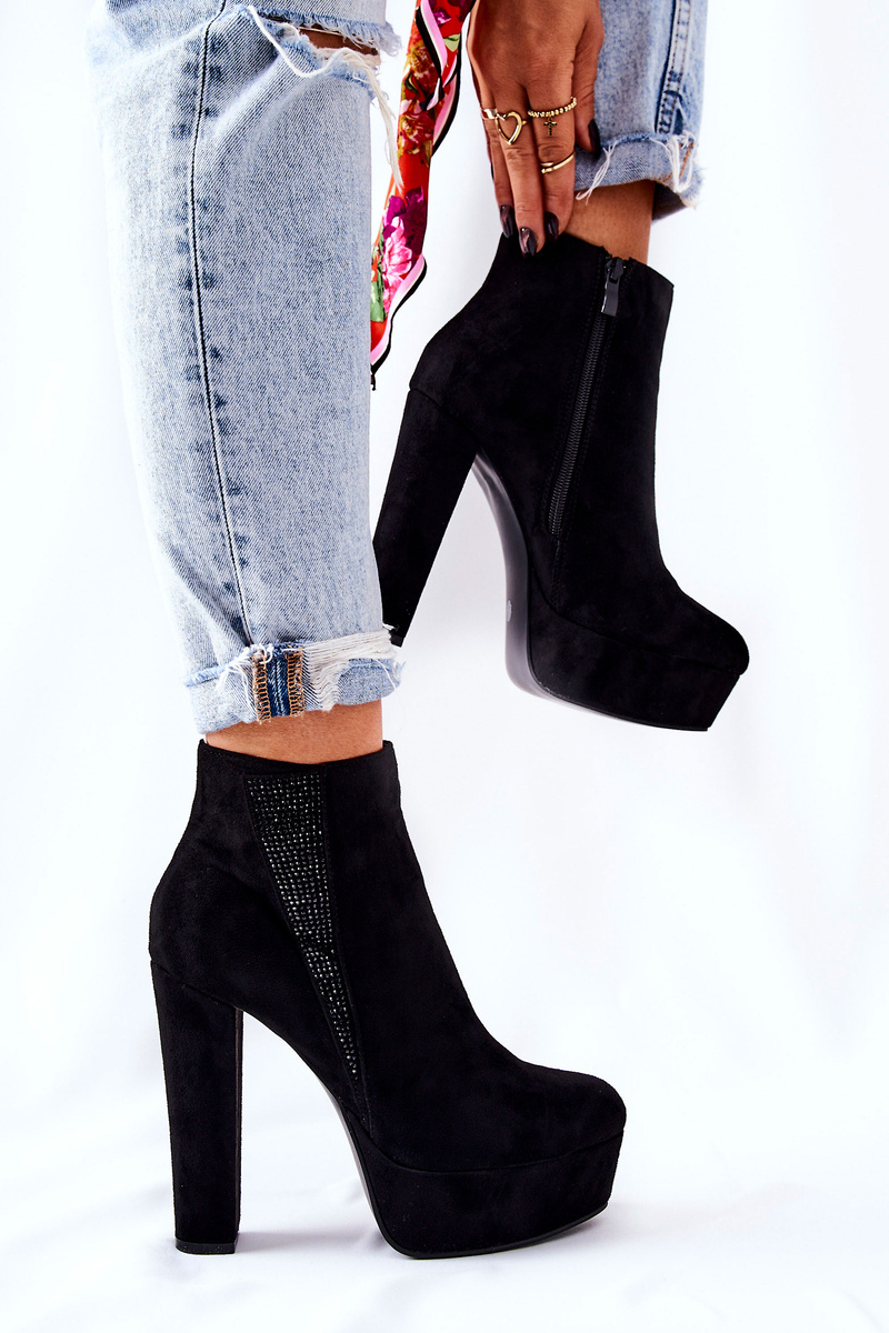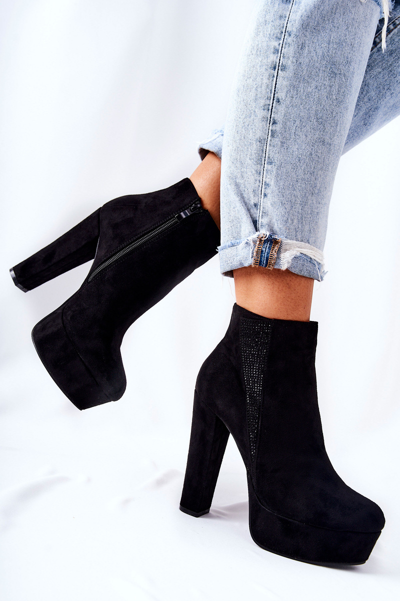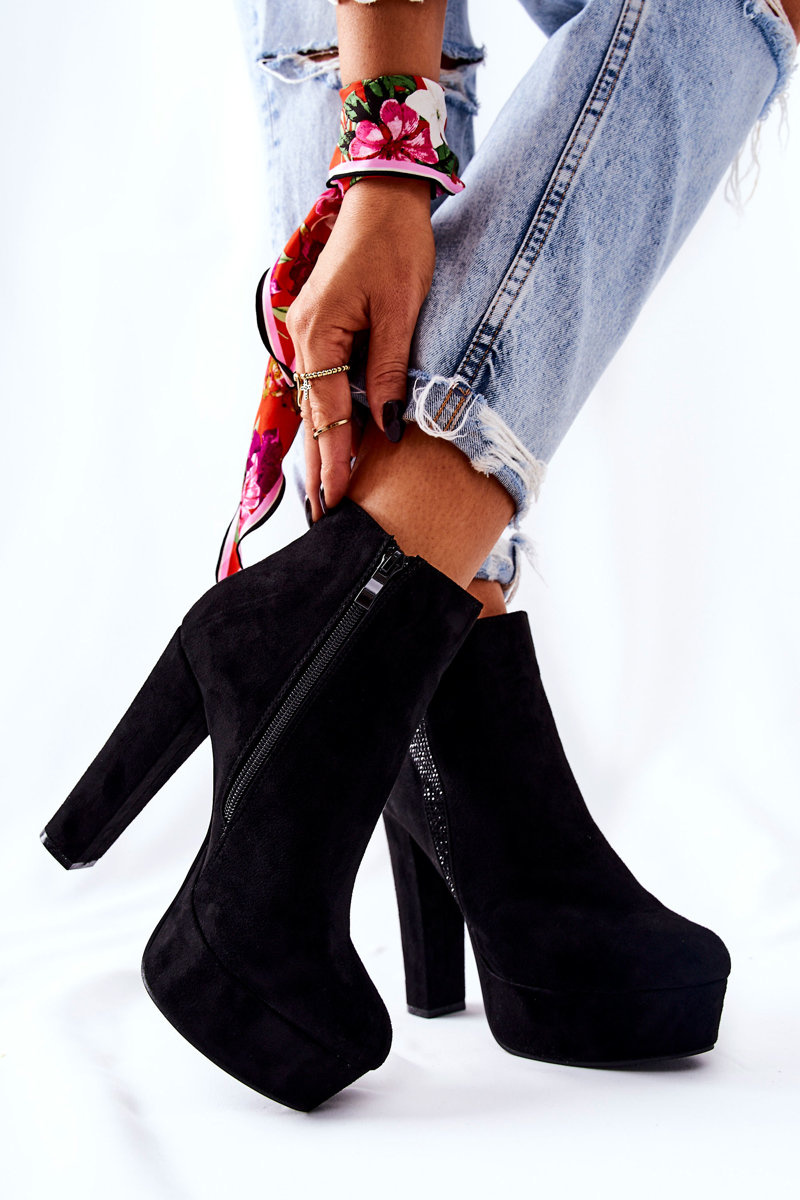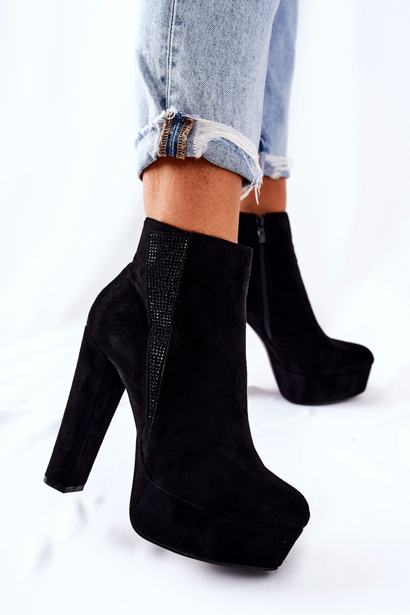 Roztomilé boty na vysokém podpatku a platformě zeštíhlí vaše nohy a opticky je prodlouží. Vyrobeno ze semišové ekokůže. Zapínání na zip. Zdobené malými zirkony na boku. Skvěle se hodí na různé akce nebo na výlety s přáteli! Prohlédněte si celou naši nabídku bot!