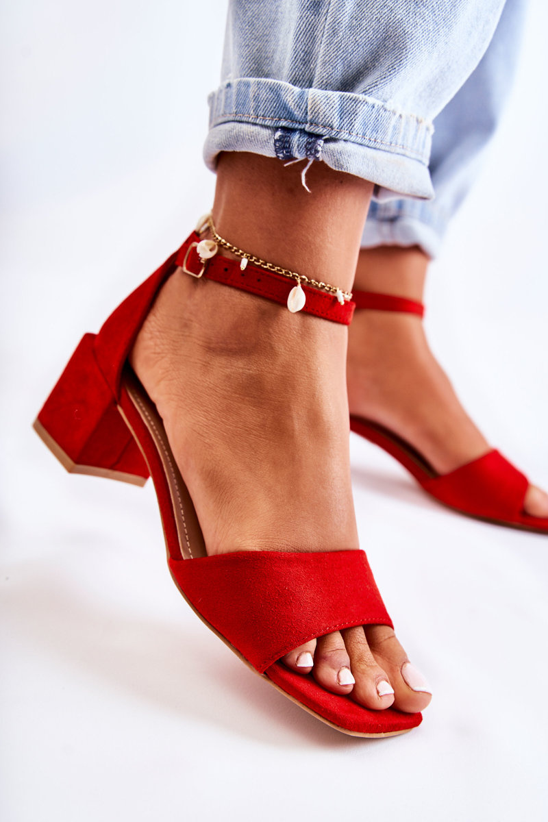 Semišové Dámské Sandály Na Podpatku Červené Luciana