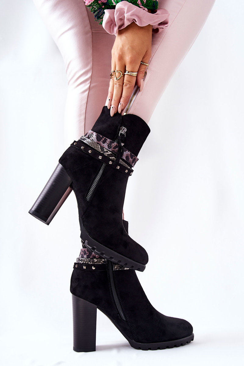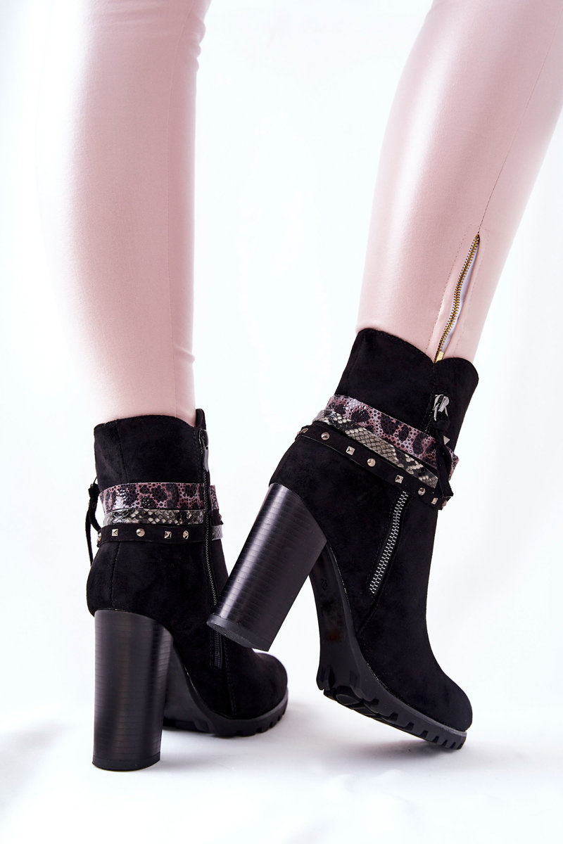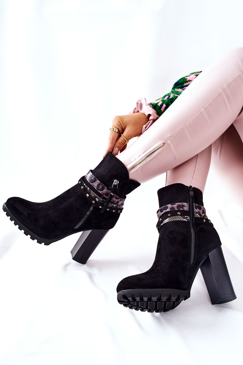 Semišové Kotníkové Boty Na Vysoké Podpatku Černe Besis