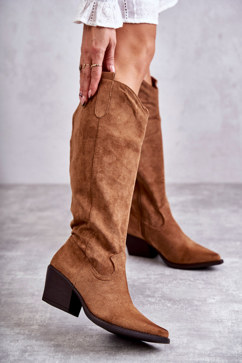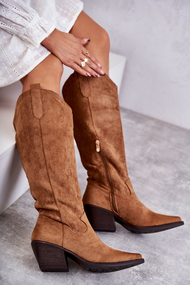 Boty - kovbojské boty jsou vyrobeny z ekologického semiše, který je příjemný na dotek. Vpředu mají jemné prošívání. Kozačky ve stylu kovbojských bot mají špičatou špičku a masivní podpatek v podobě sloupku. Nazouvací model s přídavným zipem na boku svršku. Stélka je vyrobena z eko kůže. Boty mají pevný podpatek. Tento jedinečný model by měl být jen váš! Při výběru velikosti použijte tabulku velikostí.