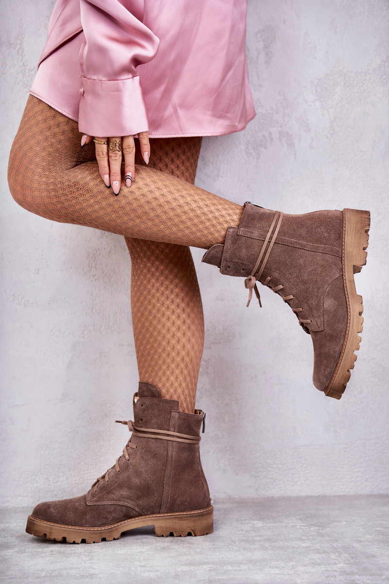 Klasické dámské kozačky vyrobené z přírodní kůže nejvyšší kvality. Model s prošíváním na svršku. Vzadu je zip usnadňující nazouvání, vpředu je šněrování umožňující správné přizpůsobení obuvi. Kozačky jsou nasazeny na plochém podpatku s masivním nášlapem. Pohodlí a pohodlí při používání zaručeno! Při výběru velikosti se prosím řiďte tabulkou velikostí.