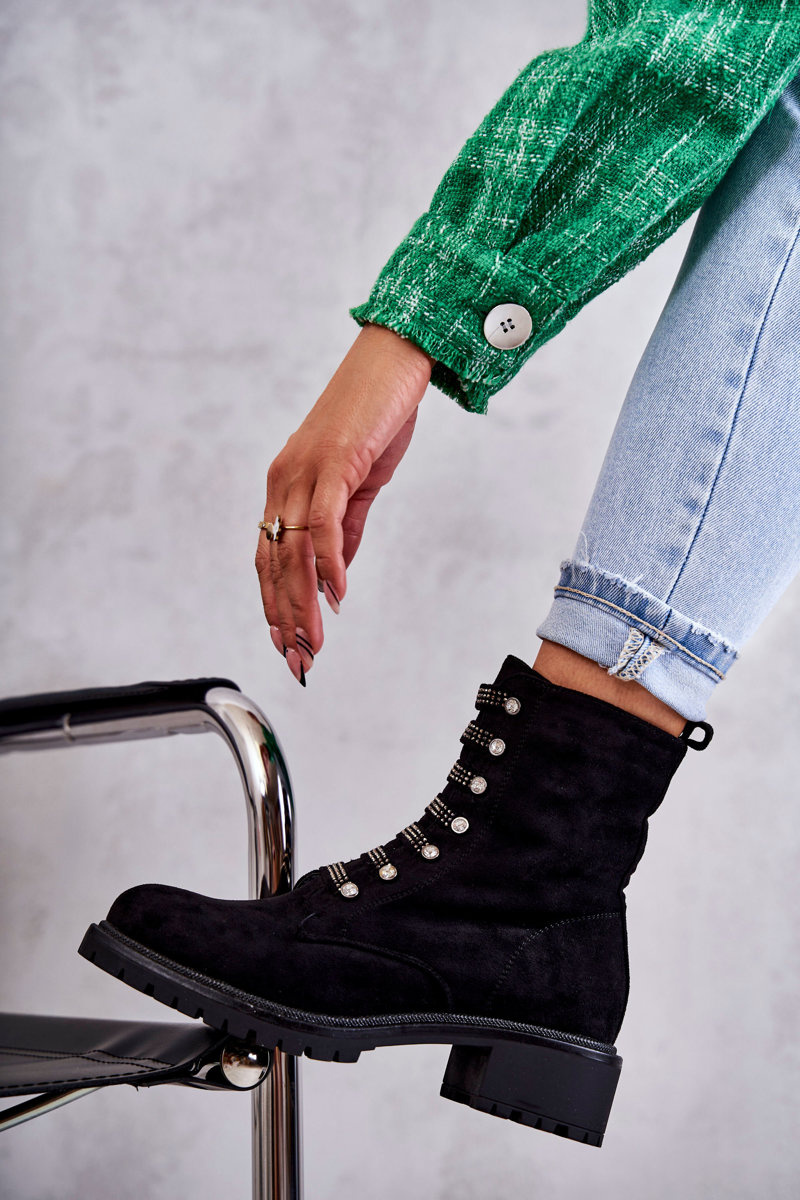 semišové kozačky s ozdobnými pruhy Černé Malesia