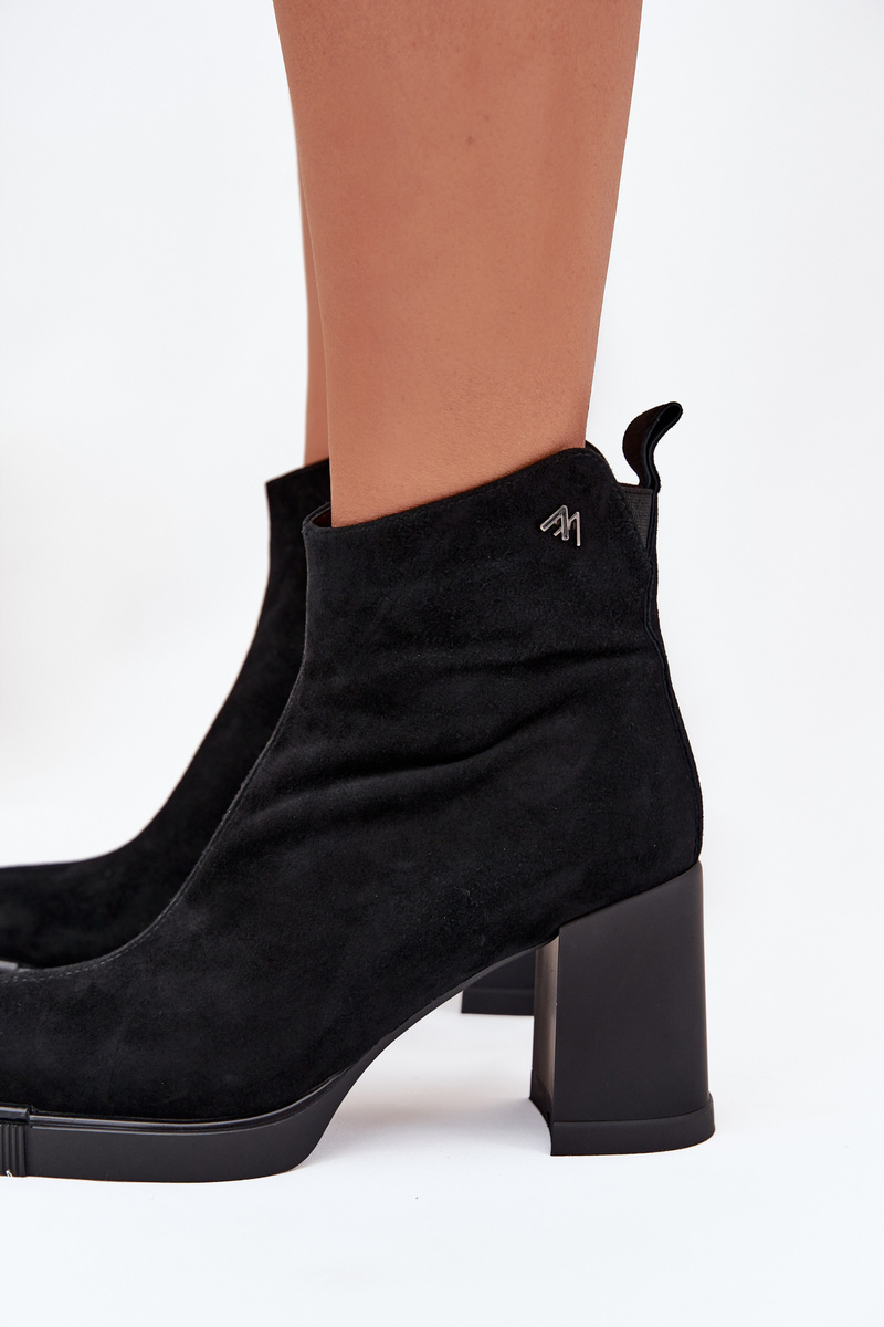 Semišové kožené dámské boty na podpatku Vinceza 91142 Černé