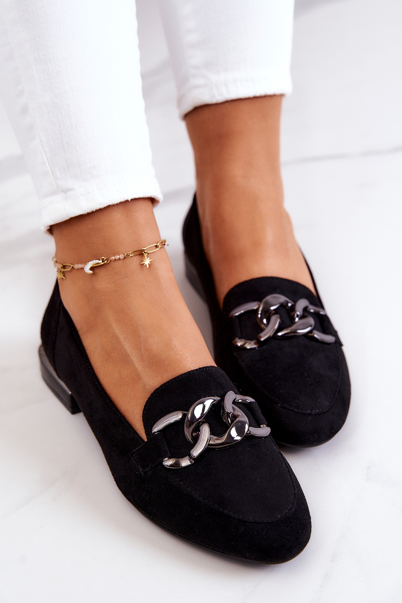 Elegantní a stylové mokasíny budou perfektní pro mnoho stylů! Mokasíny vyrobené z ekologického semiše. Naklouznout, s mandlovým, štíhlým nosem. Nasazené na plochém podpatku. Udržováno v jednotných barvách. Přední strana zdobená krásným řetízkem. Navíc mají mokasíny vložku z přírodní kůže. Ideální pro každodenní styling! Při výběru velikosti použijte tabulku velikostí.