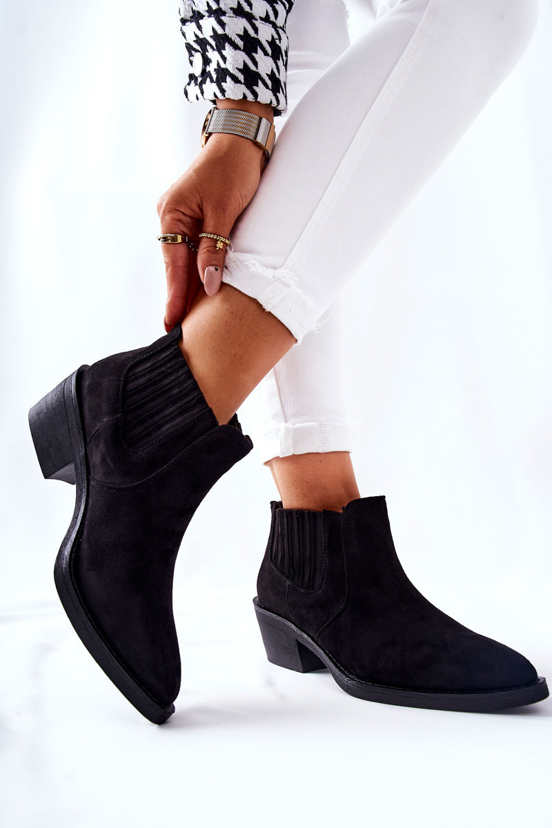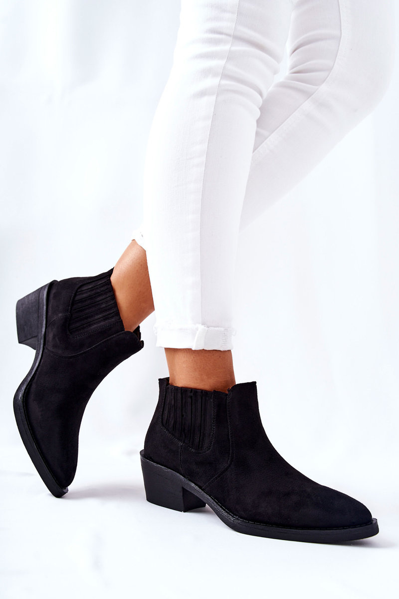 Pohodlné a stylové boty na masivním jehlovém podpatku. Vyrobeno z ekologického semiše. Špičatá špička. Na boku svršku je po obou stranách lem. Botičky mají jemné zateplení v podobě deky na boty. Kupte si je ještě dnes! Při výběru velikosti se řiďte tabulkou velikostí.