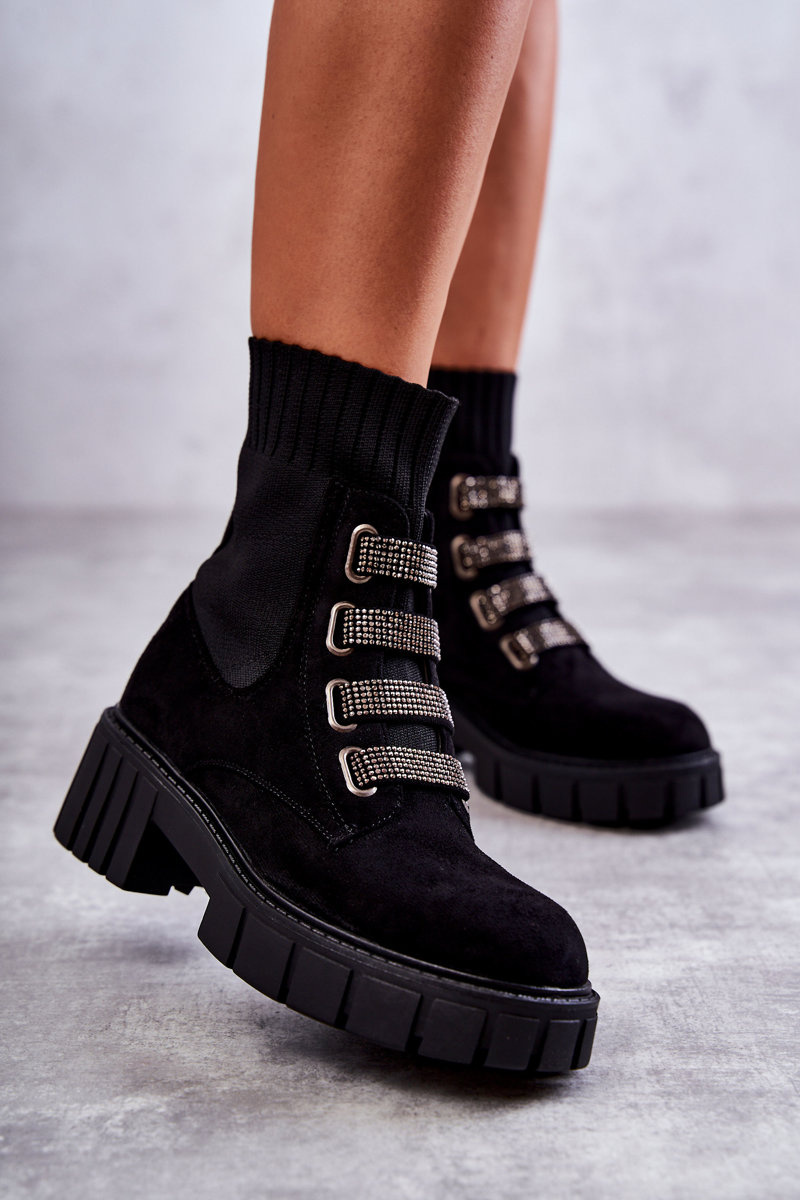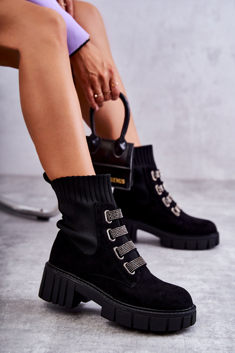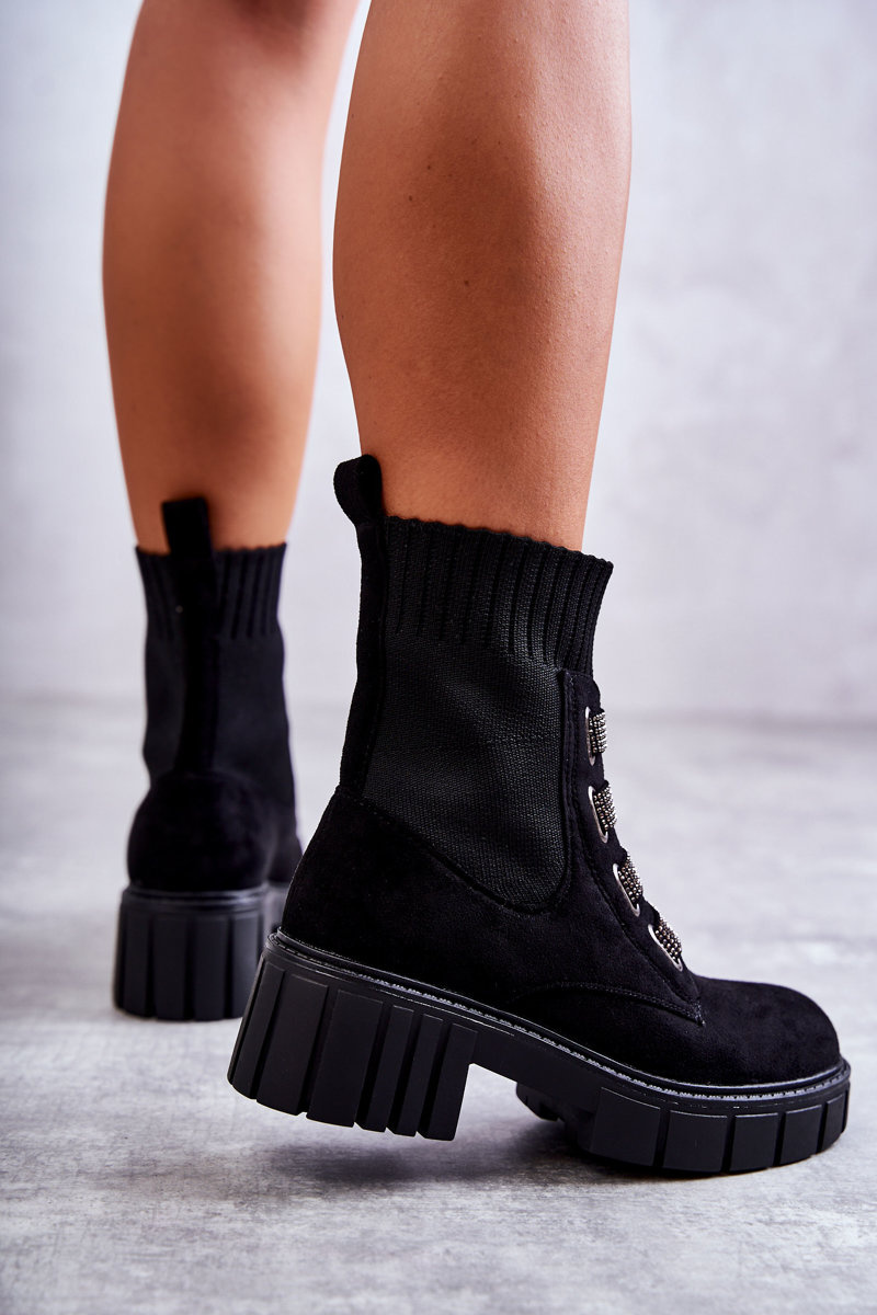 Módní boty – dělnice si získaly srdce mnoha žen! Tento model byl vyroben z kombinace na dotek příjemného eko semiše a textilního materiálu. Kozačky jsou nazouvací, s jemným lemem v horní části svršku. Tento model je zateplen dekou na obuv pouze ve výšce chodidla. Vyztužená pata. Nasazené na masivní platformě s plochým podpatkem. Při výběru velikosti použijte tabulku velikostí.
