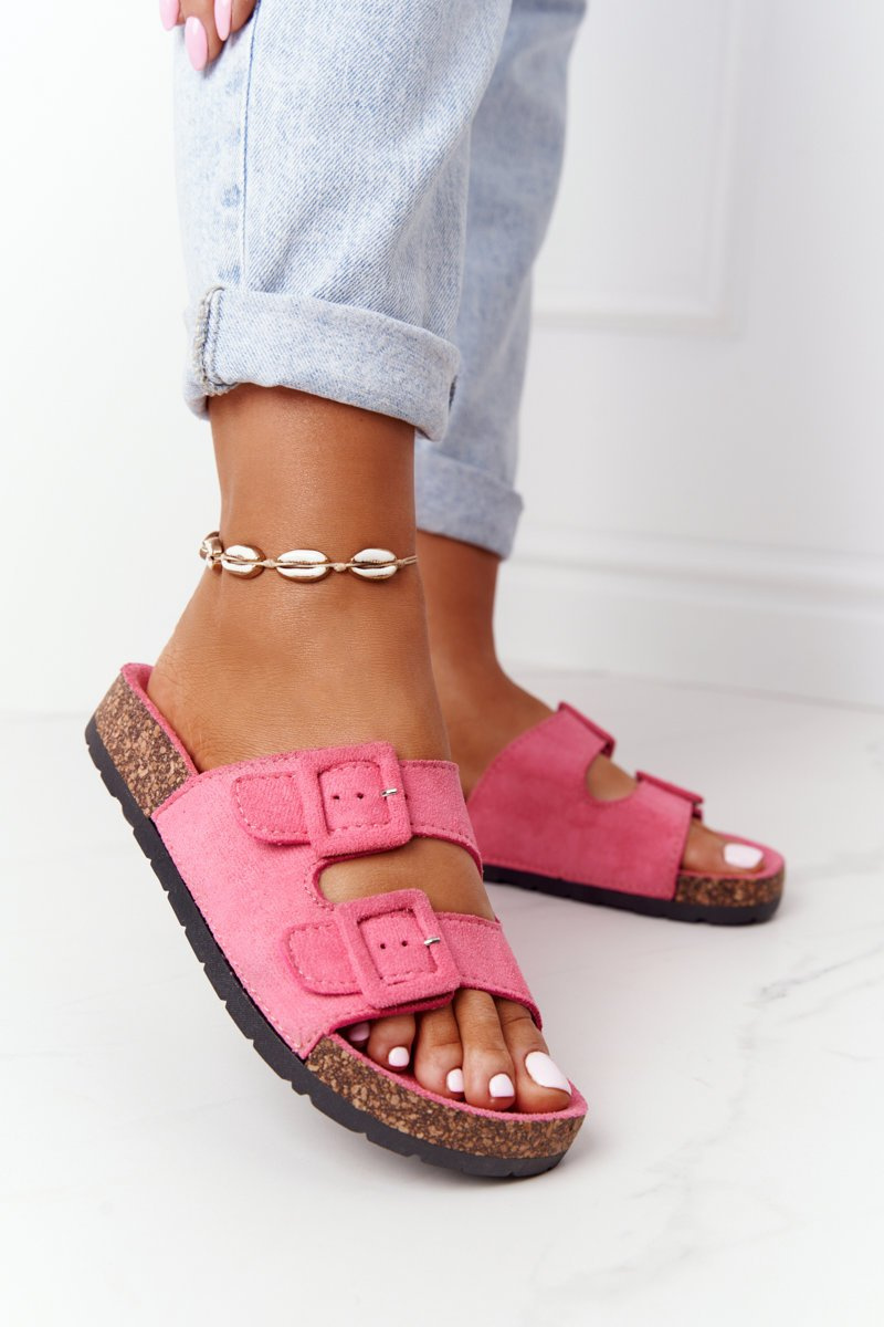 Unikátní dámské pantofle vyrobené z ekologického semiše. Boty mají profilovanou stélku, která zaručuje pohodlí. Módní střih se sponami zpestří vaše stylizace! Při výběru velikosti použijte tabulku velikostí.