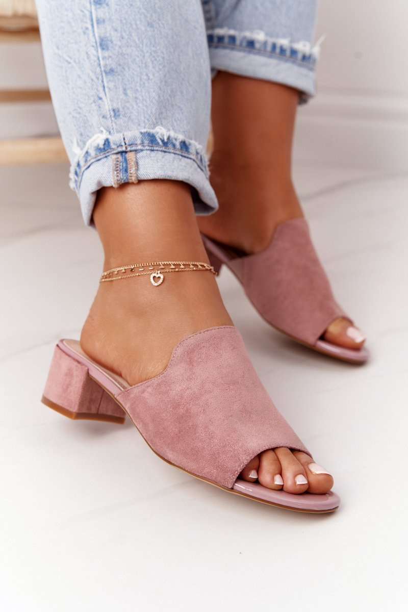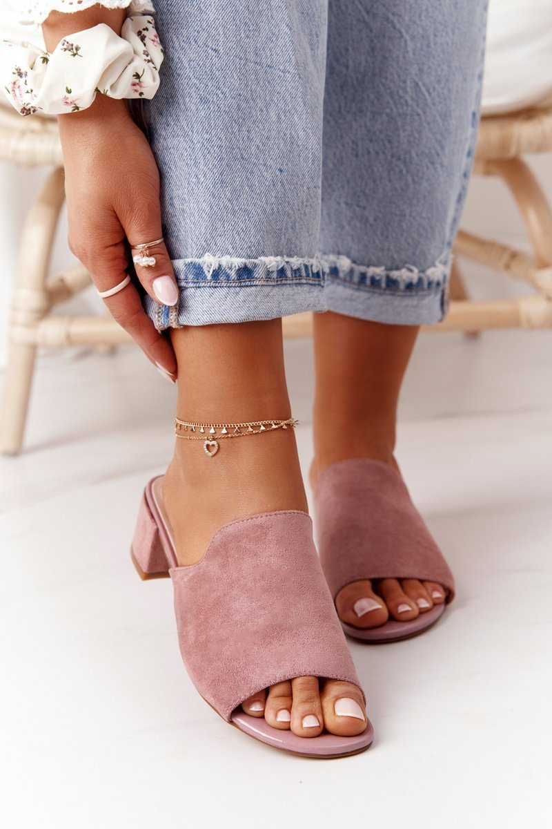 Semišové Nazouváky Na Podpatku Sergio Leone KL313 Růžové