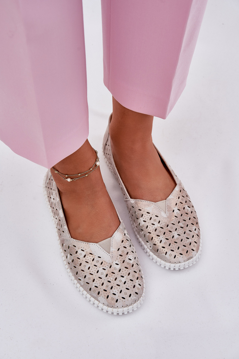 Semišové perforované dámské polobotky zlatobéžové Chulieta