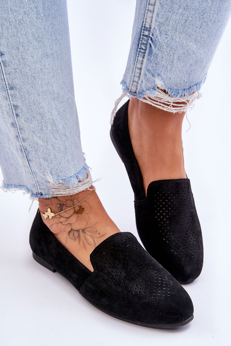 Nádherné dámské mokasíny vyrobené z přírodního semiše. Na přední straně mají ozdobný prolamovaný vzor. Tento model je postaven na plochém podpatku a protiskluzové podrážce. Mokasíny mají stélku Comfort vyrobenou z přírodní kůže. Podpatek u těchto bot je mírně vyztužený. Rozhodně byste je měli mít! Při výběru velikosti se prosím řiďte tabulkou velikostí.