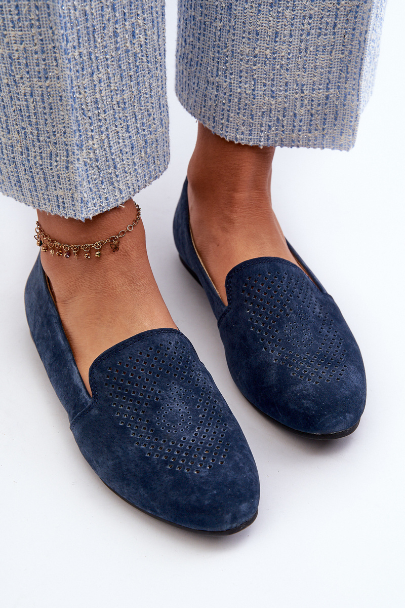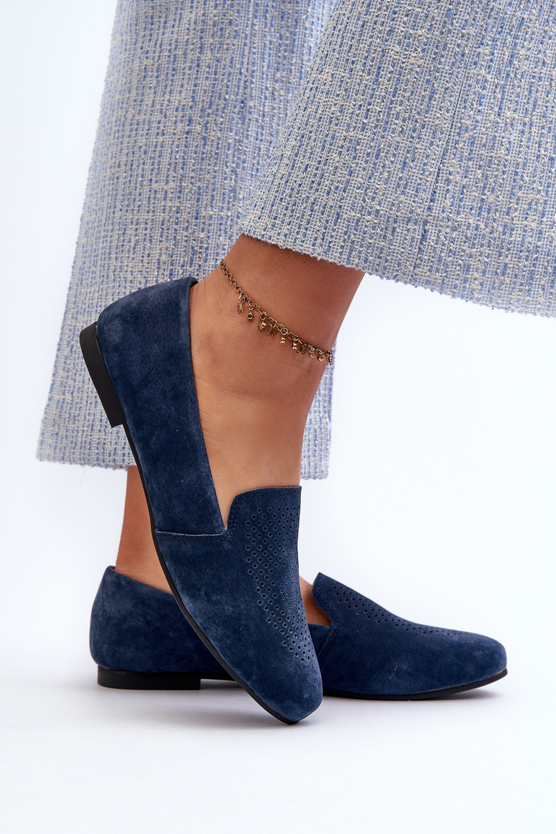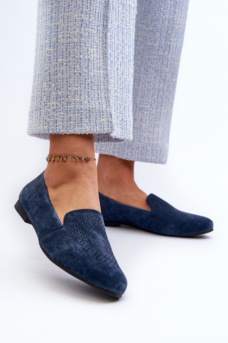 Nádherné dámské mokasíny vyrobené z přírodního semiše. Na přední straně mají ozdobný prolamovaný vzor. Tento model je postaven na plochém podpatku a protiskluzové podrážce. Mokasíny mají stélku Comfort vyrobenou z přírodní kůže. Podpatek u těchto bot je mírně vyztužený. Rozhodně byste je měli mít! Při výběru velikosti se prosím řiďte tabulkou velikostí.