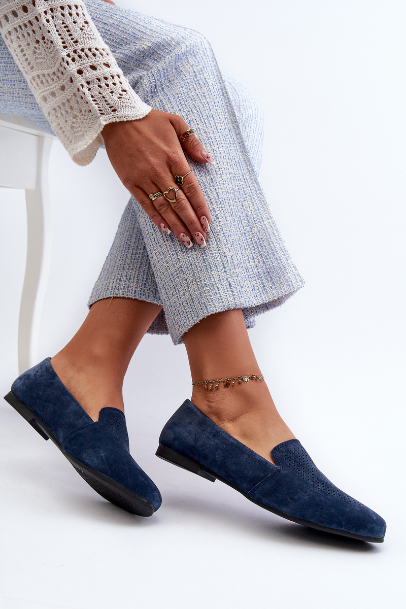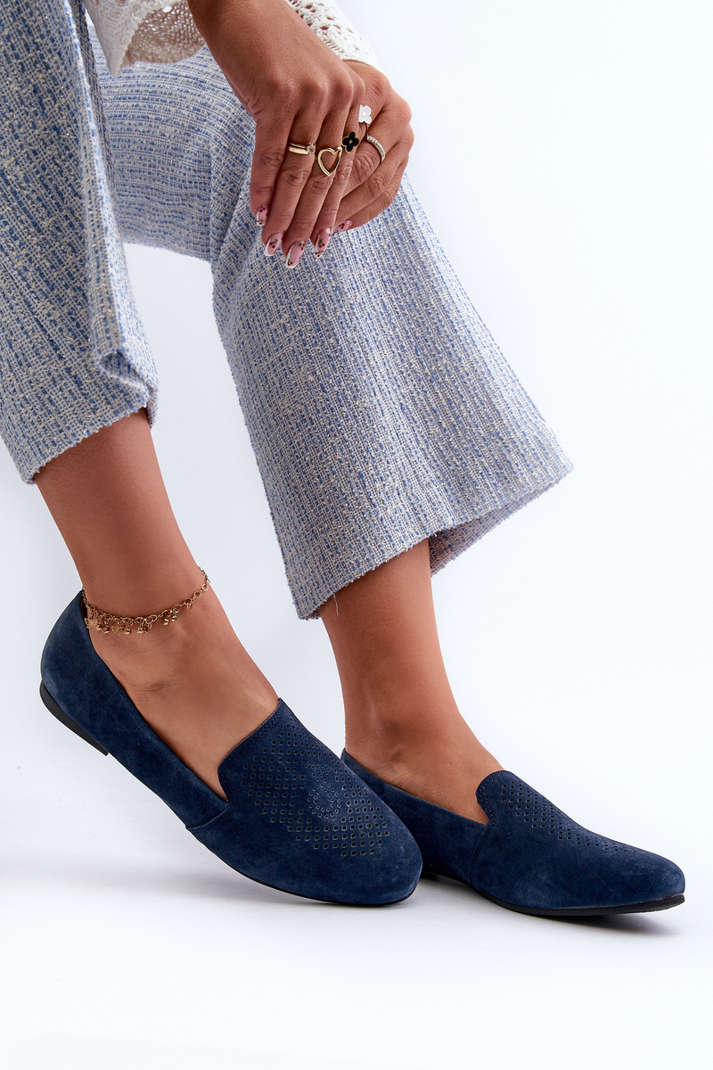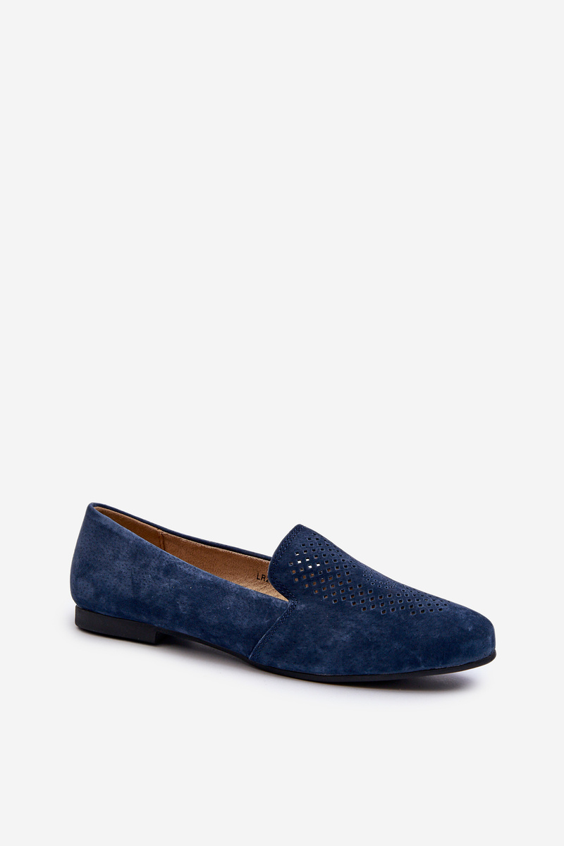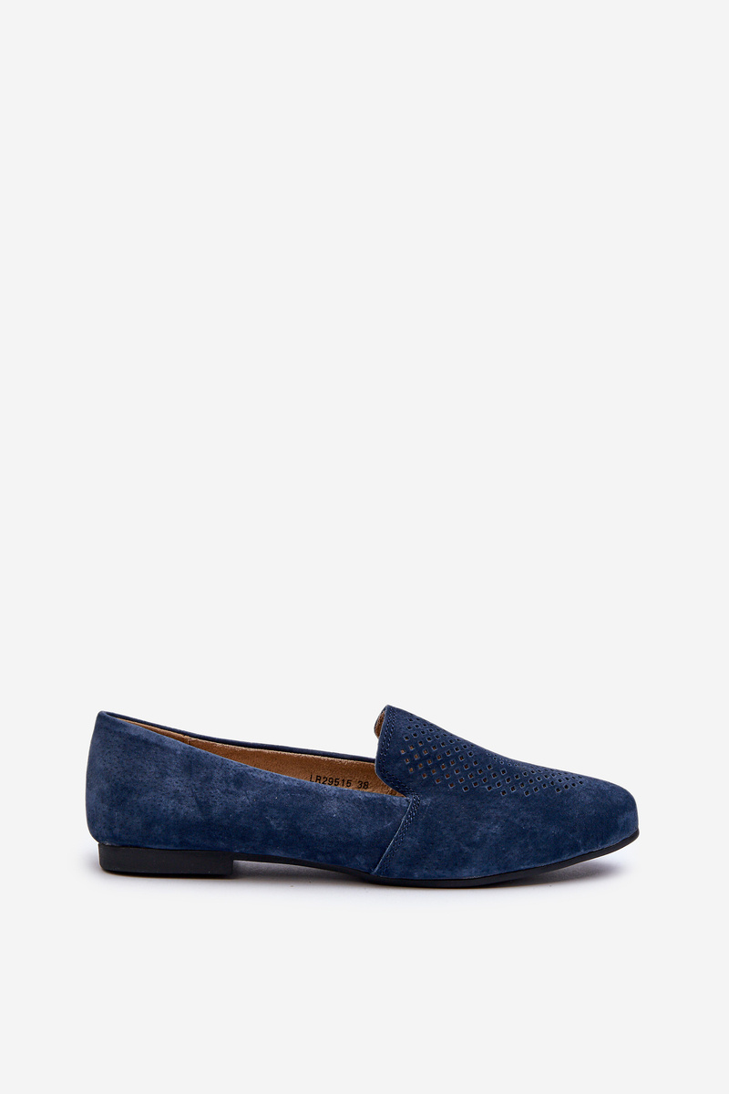 Nádherné dámské mokasíny vyrobené z přírodního semiše. Na přední straně mají ozdobný prolamovaný vzor. Tento model je postaven na plochém podpatku a protiskluzové podrážce. Mokasíny mají stélku Comfort vyrobenou z přírodní kůže. Podpatek u těchto bot je mírně vyztužený. Rozhodně byste je měli mít! Při výběru velikosti se prosím řiďte tabulkou velikostí.