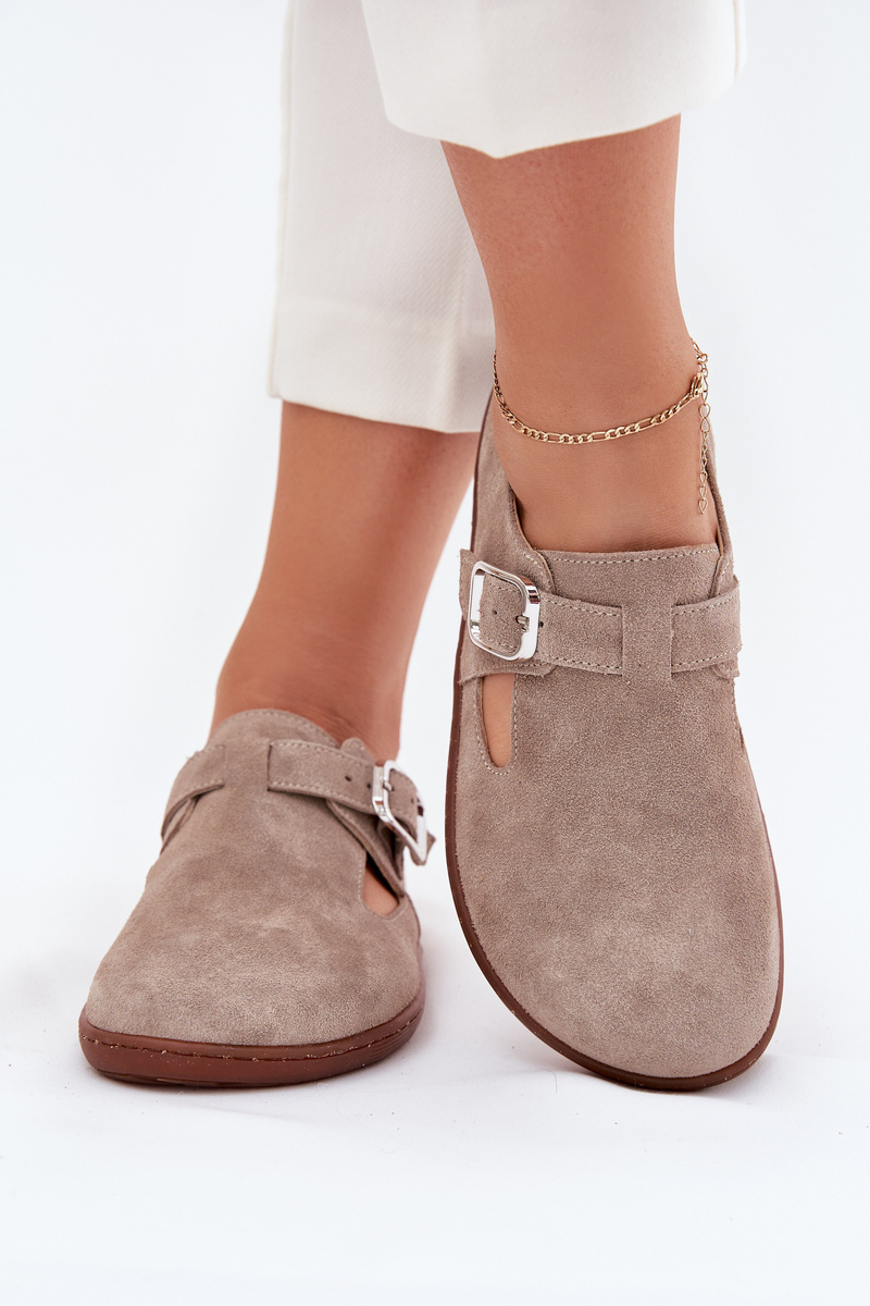 Semišové Polobotky Barefoot Dámské S Přezkou Zazoo N1261 Béžové