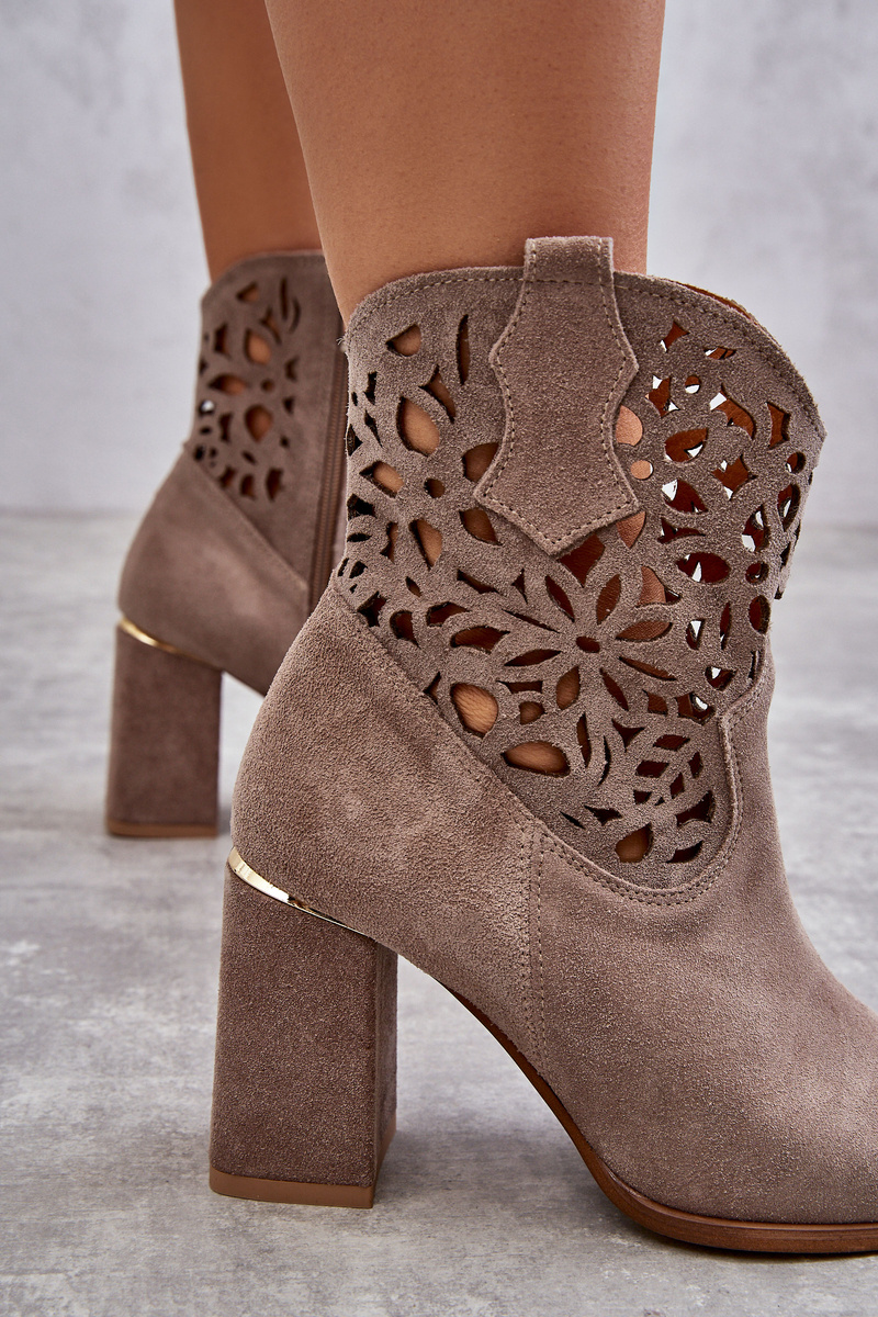 Semišové prolamované boty Lewski Boty 3264 Světle hnědá
