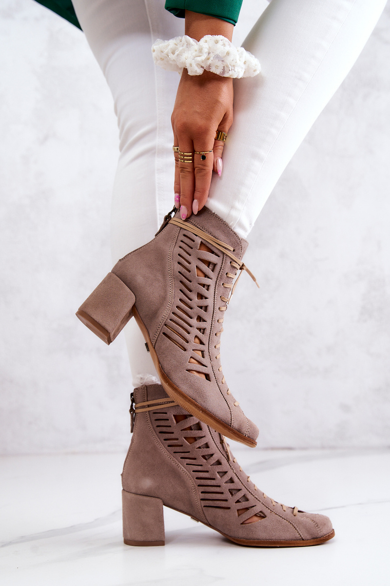 Semišové Prolamované Boty Maciejka 05508-04 Béžová